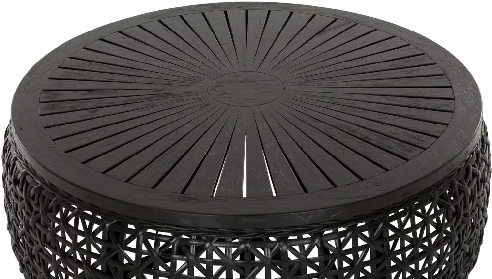Rimini large pyöreä rottinkipöytä on täydellinen valinta rennon tyylikkääseen sisustumakuun. Rottinkinen pöytä mustana on upea katseenvangitsija ja kokopuinen kuvioitu pöytälevy on sekä mielenkiintoinen että käytännöllinen. Mustalla värillään ja kauniilla materiaalillaan teet kodistasi uniikin.
