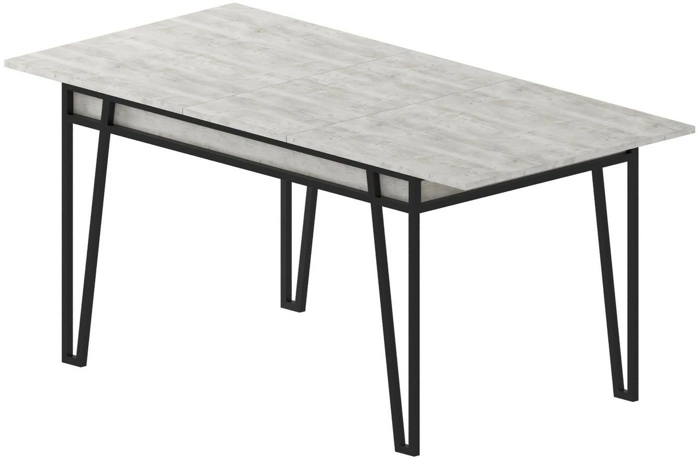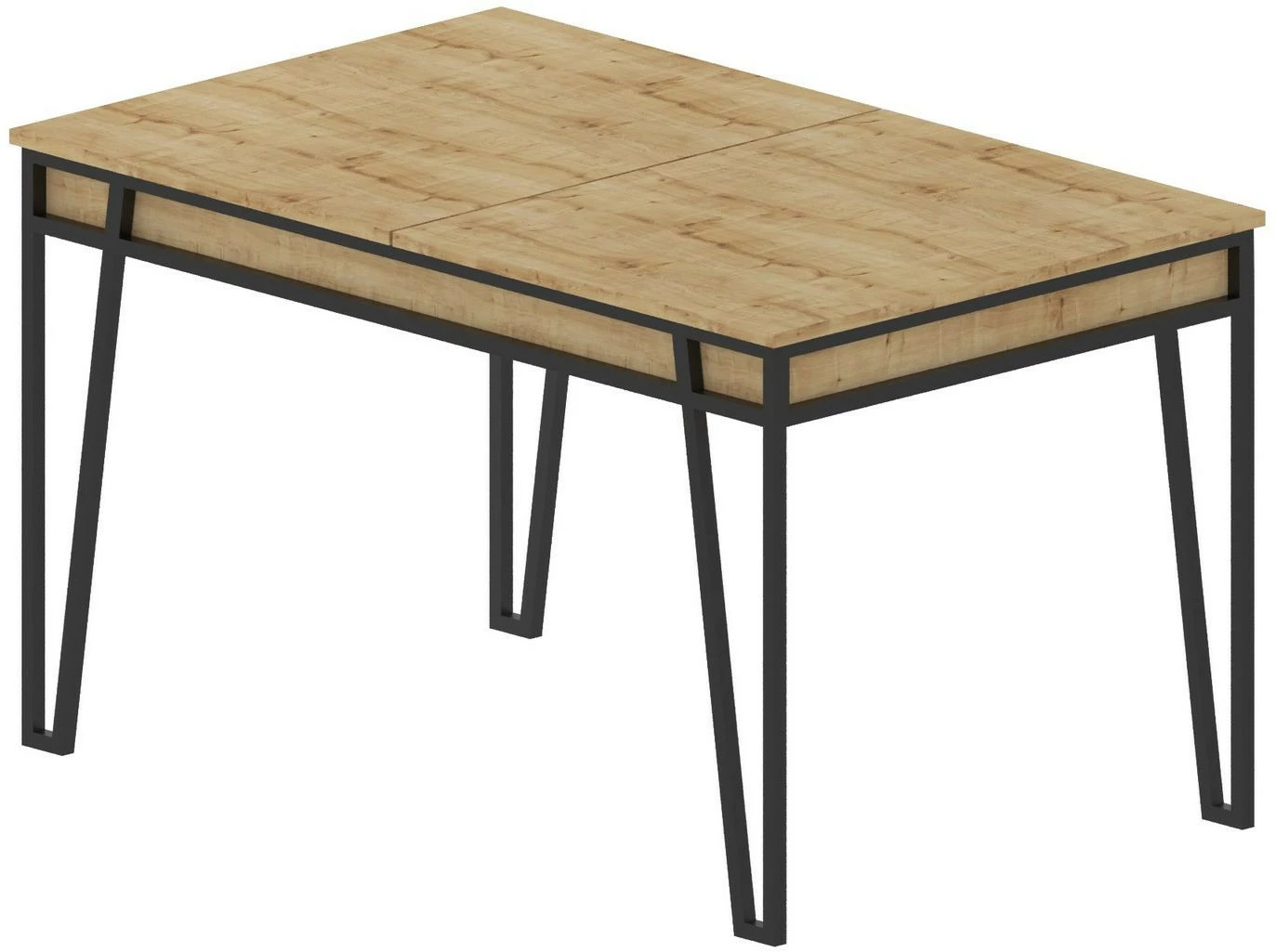 Metalliset jalat kehystävät puukuosista Pal-pöytää komeasti. Pöytää voi jatkaa 170 cm:iin asti.