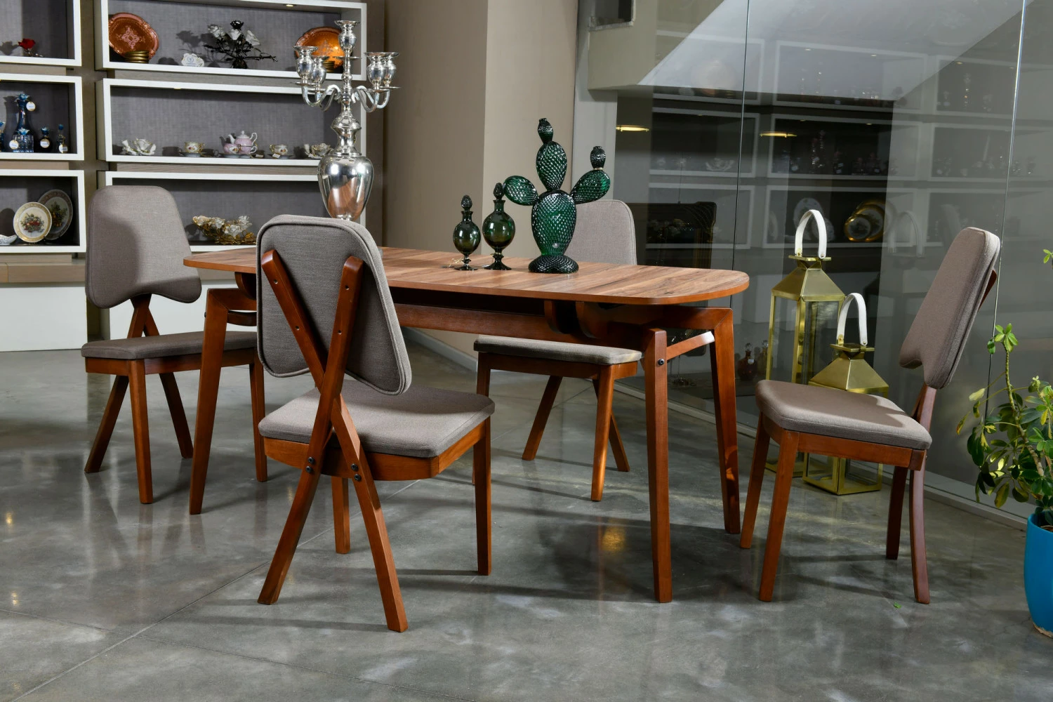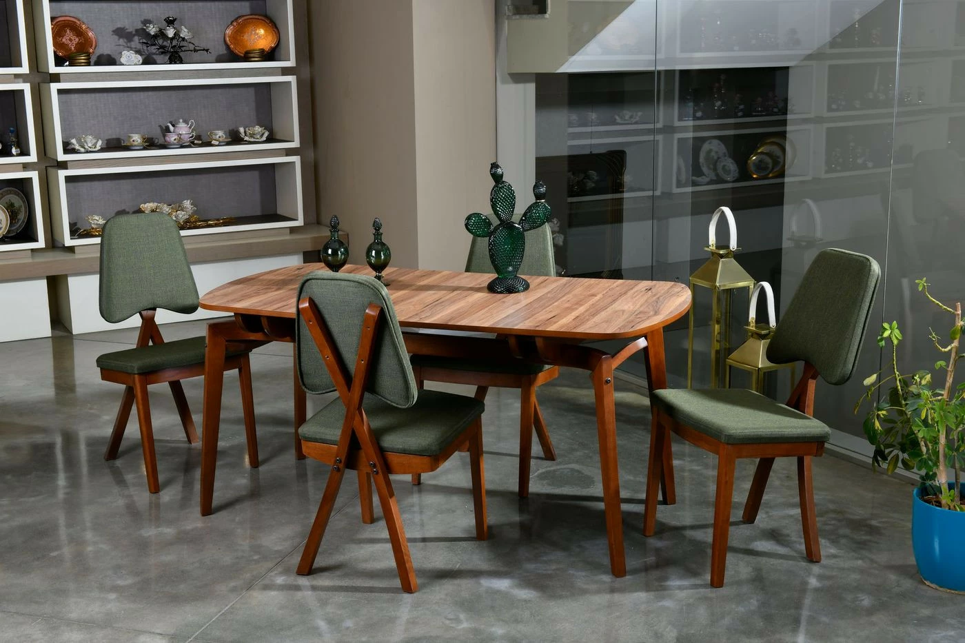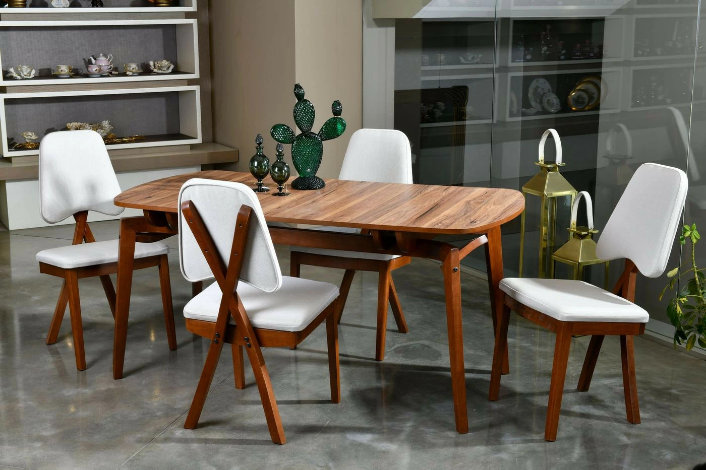 Puukuosisessa Pera-ruokapöydässä on kaunis soikea muoto.