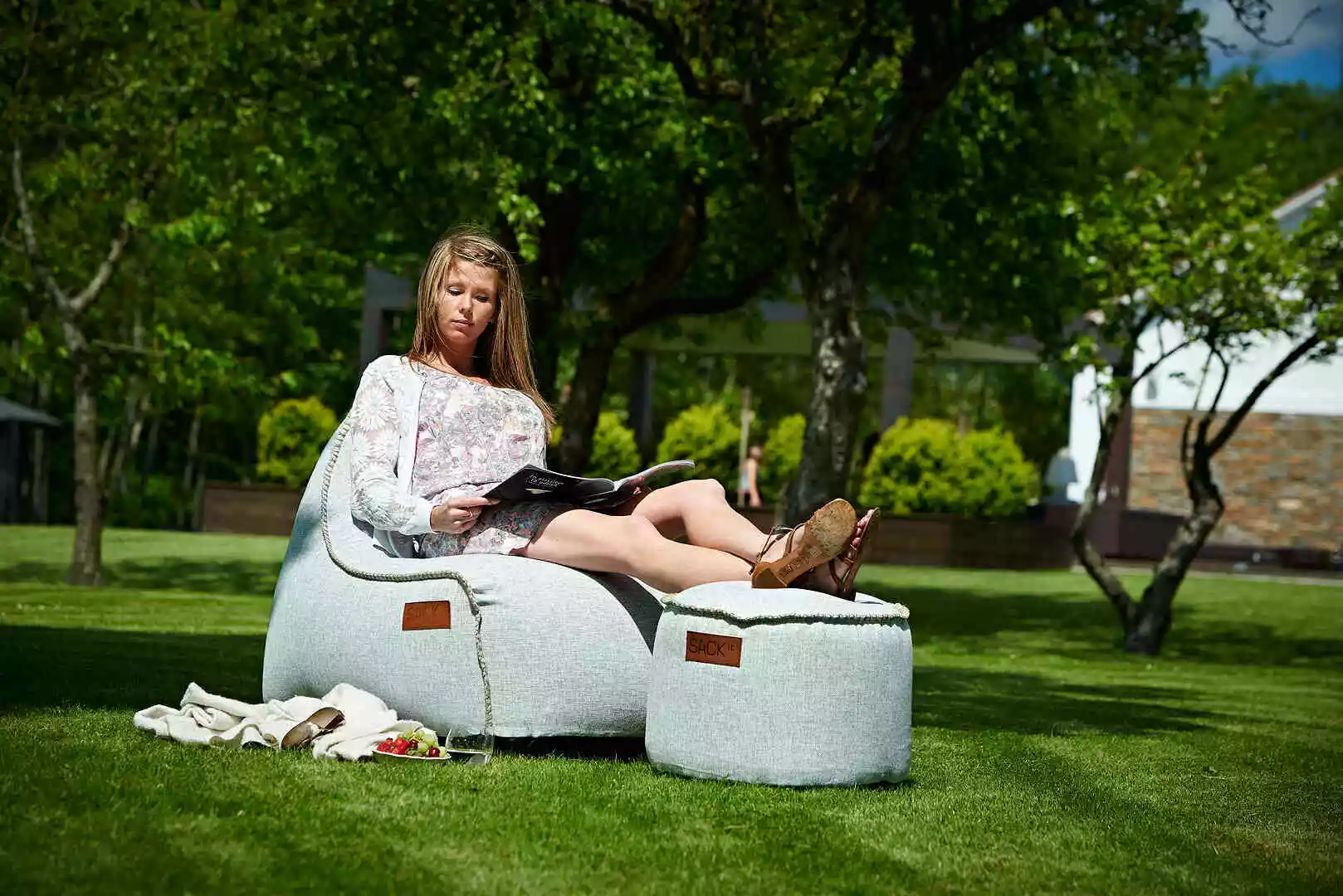 Tanskalaisen SACKit’in säkkituoli rentoon loungefiiliksen niin ulos terassille kuin sisätiloihinkin. Tukeva kaksiosainen rakenne tekee tuolista hyvin istuttavan menettämättä kuitenkaan sen rentoutta. Käsinneulotut tikkaukset viimeistelevät tyylikkään tuolin.