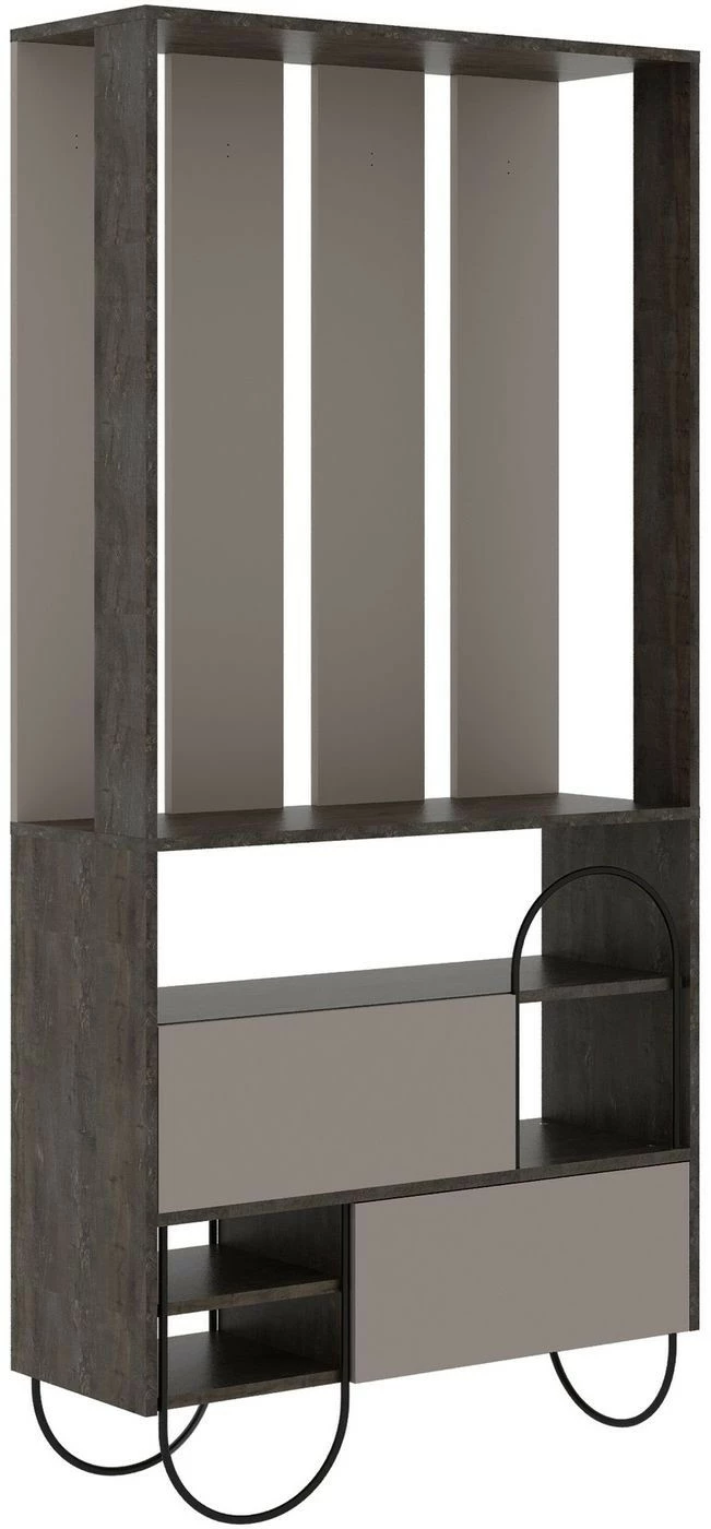Kaksivärinen Norfolk-säilytyskokonaisuus. Eteiseen sopiva kokonaisuus sisältää hyllyjä ja ripustustilaa takeille.