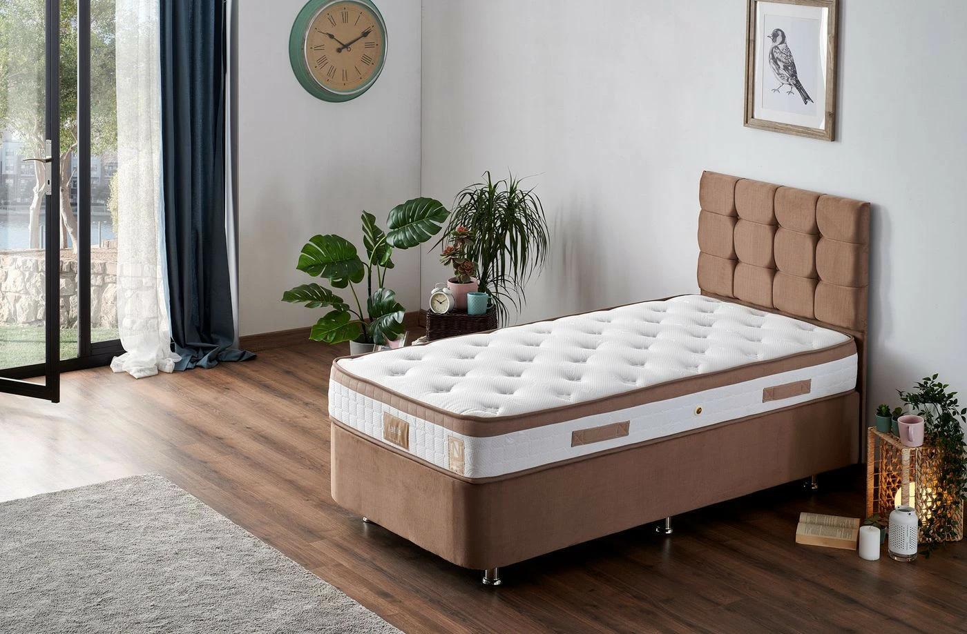 Vaaleanruskea Latte-sänkypaketti hyviin yöuniin. Voit toki juoda aamukahvitkin Latessa. Ortopedinen sänkypaketti sisältää rungon, jalat, patjan ja päädyn.