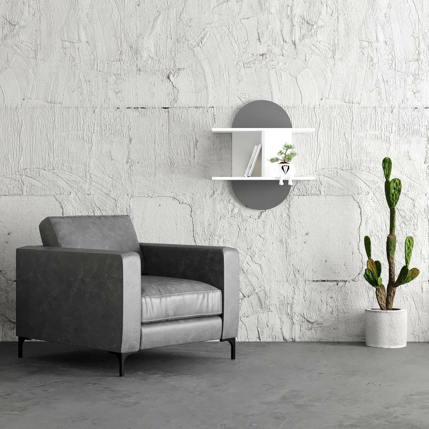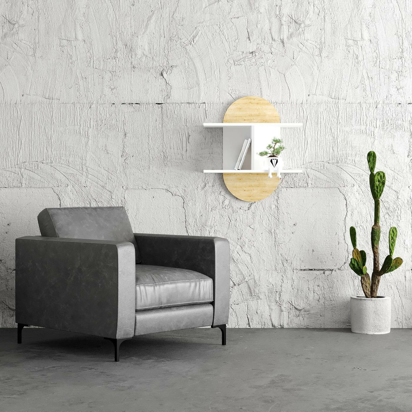 Auro sopii moneen makuun. Valkoinen hyllytaso ja tehostevärinen taustalevy.