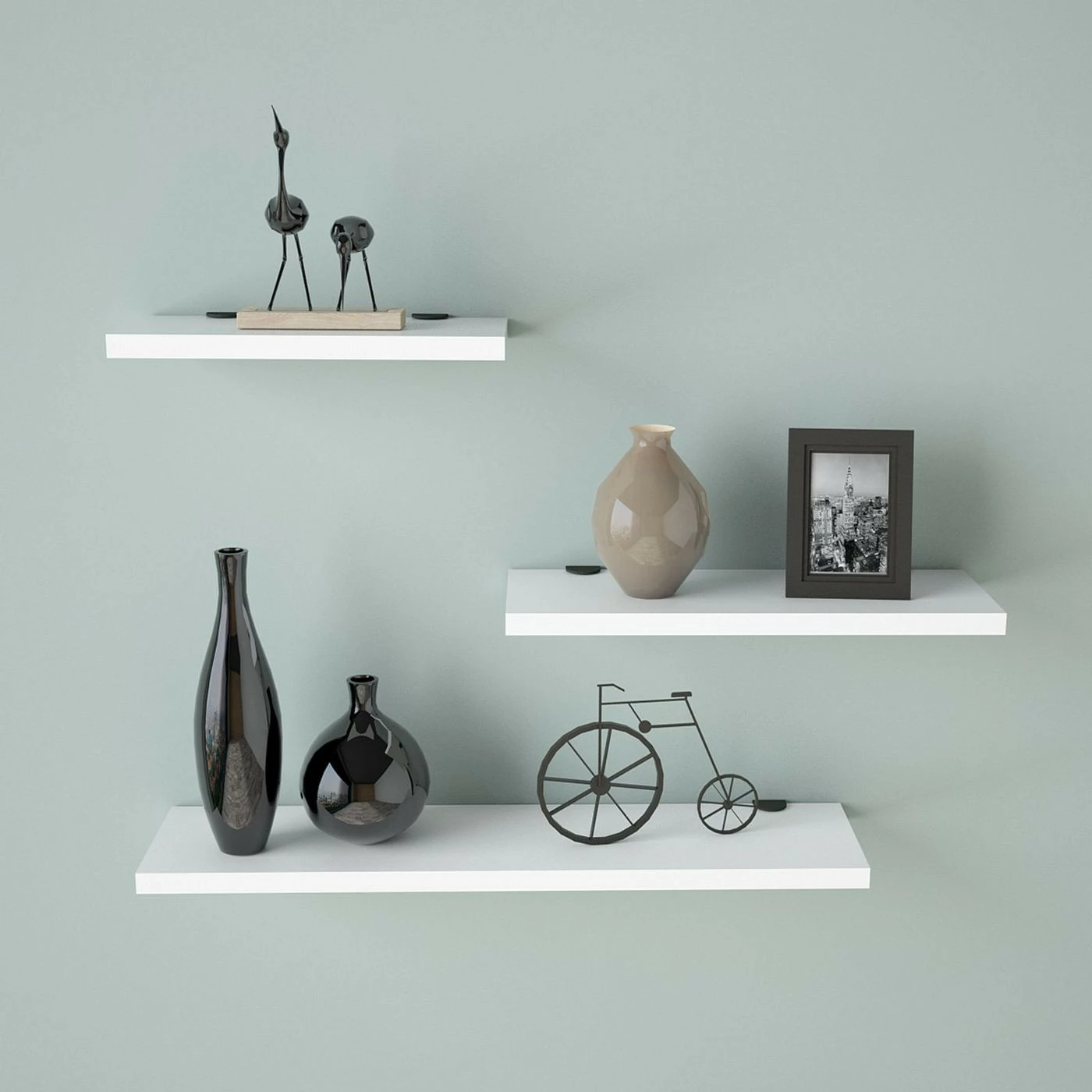 Kolmeosainen WL17-seinähyllysarja. Sommittele hyllyt oman mielesi mukaan ja täytä lempiesineilläsi.