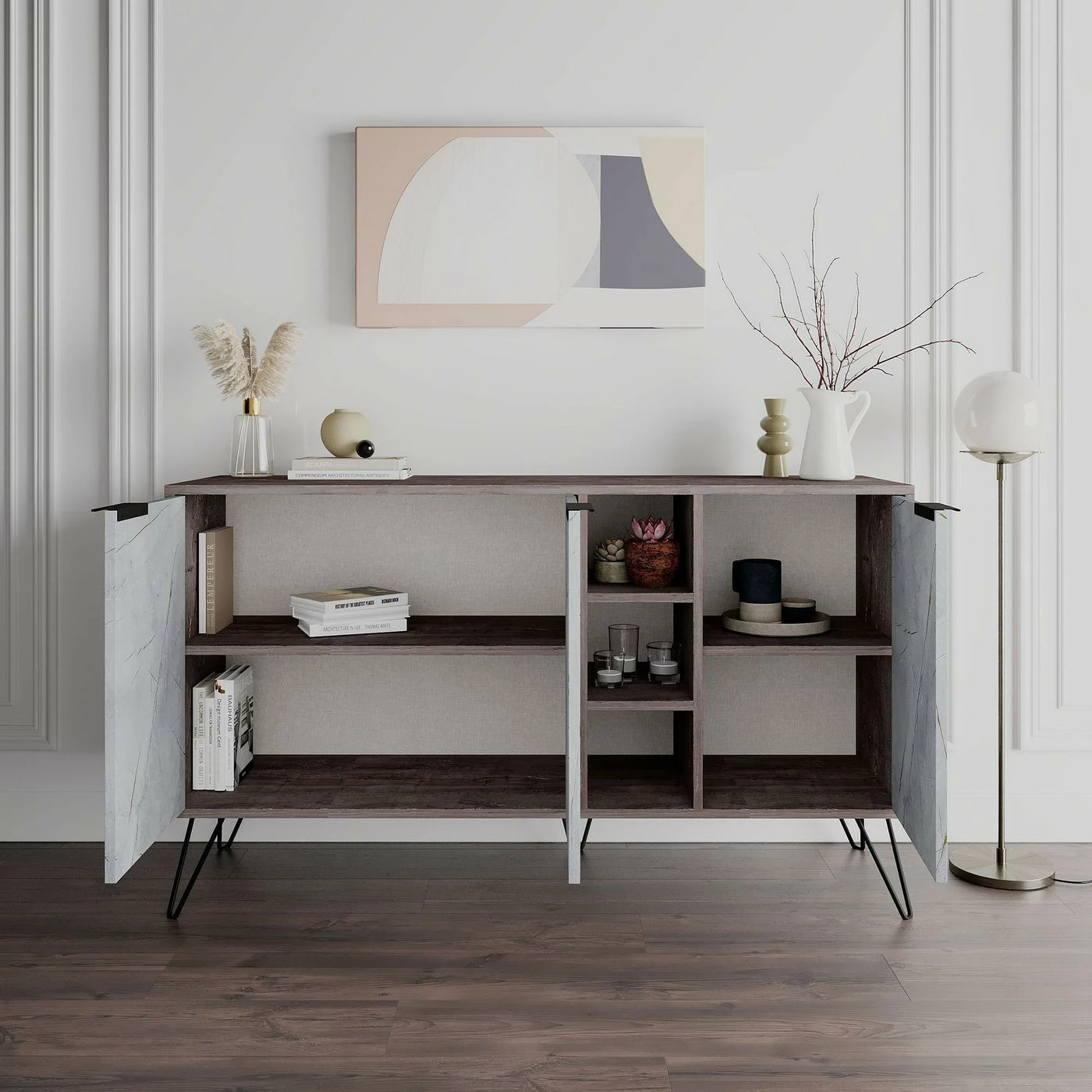 Vaaleanharmaissa ovissa on ylellinen marmorikuosi.
