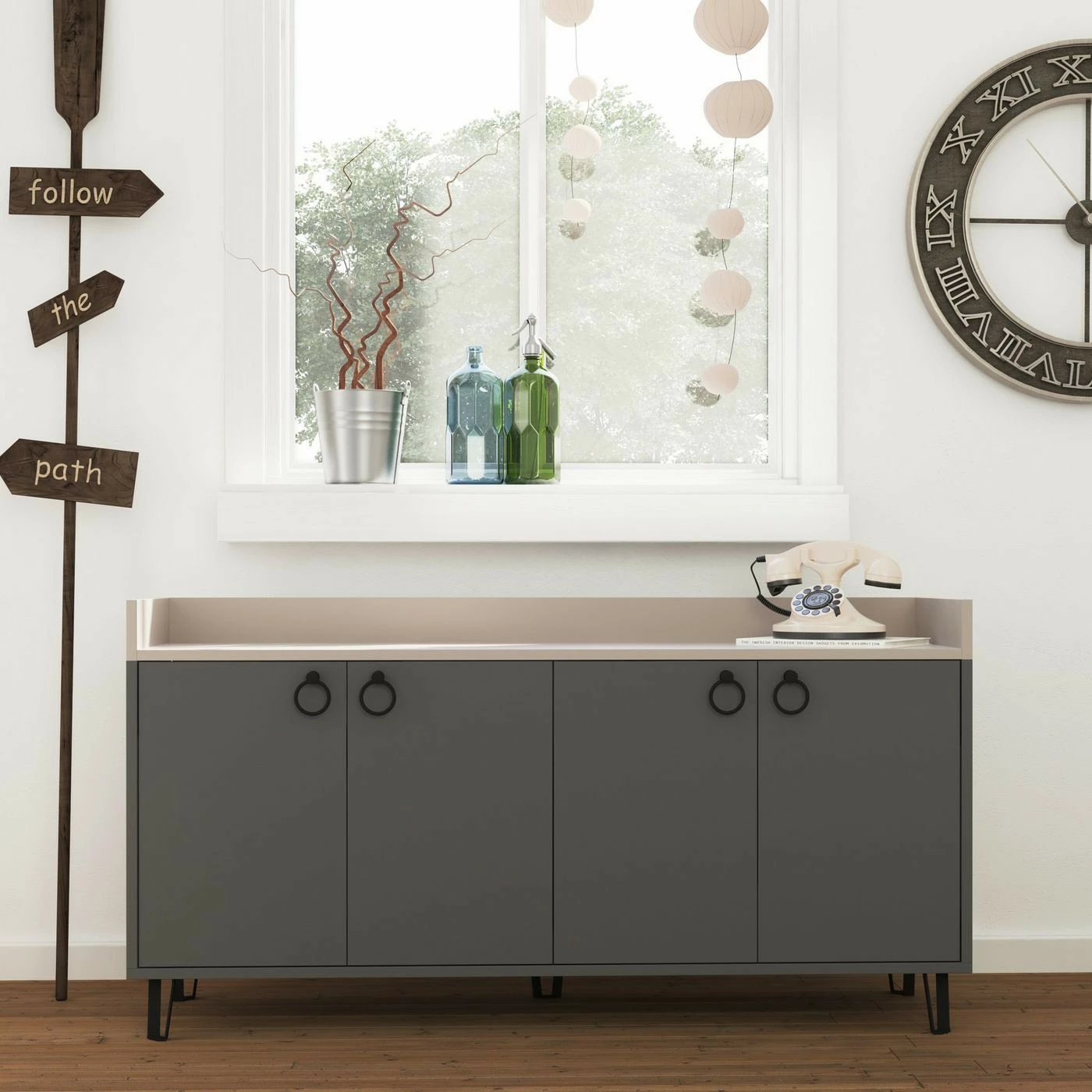 - Materiaalin tarkenne: Runko melamiinipinnoitettua lastulevyä, jalat metallia