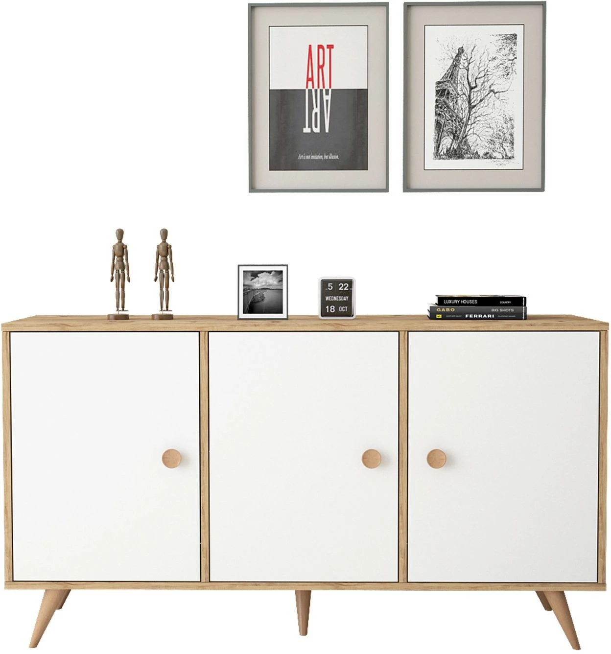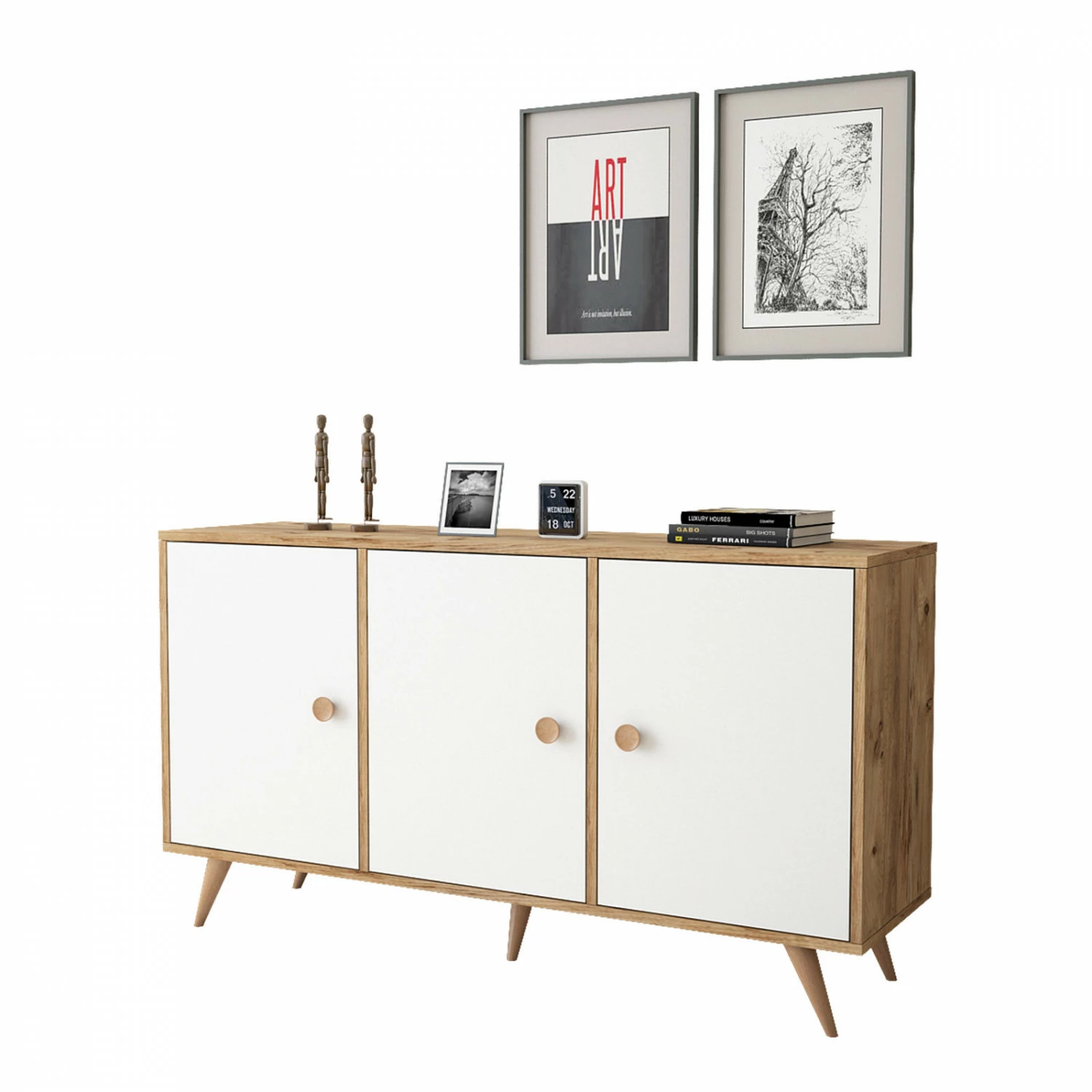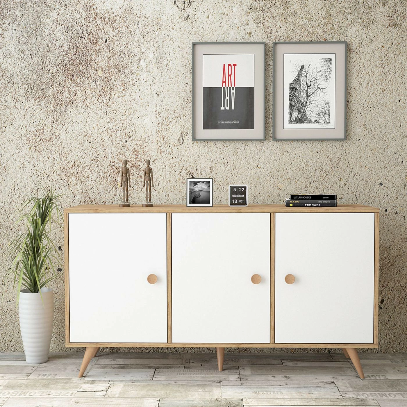 VL12-senkki. Kaunis kaksivärinen kokonaisuus sopii keittiön lisäksi olo- ja makuuhuoneeseen. Senkissä on kolme ovea.