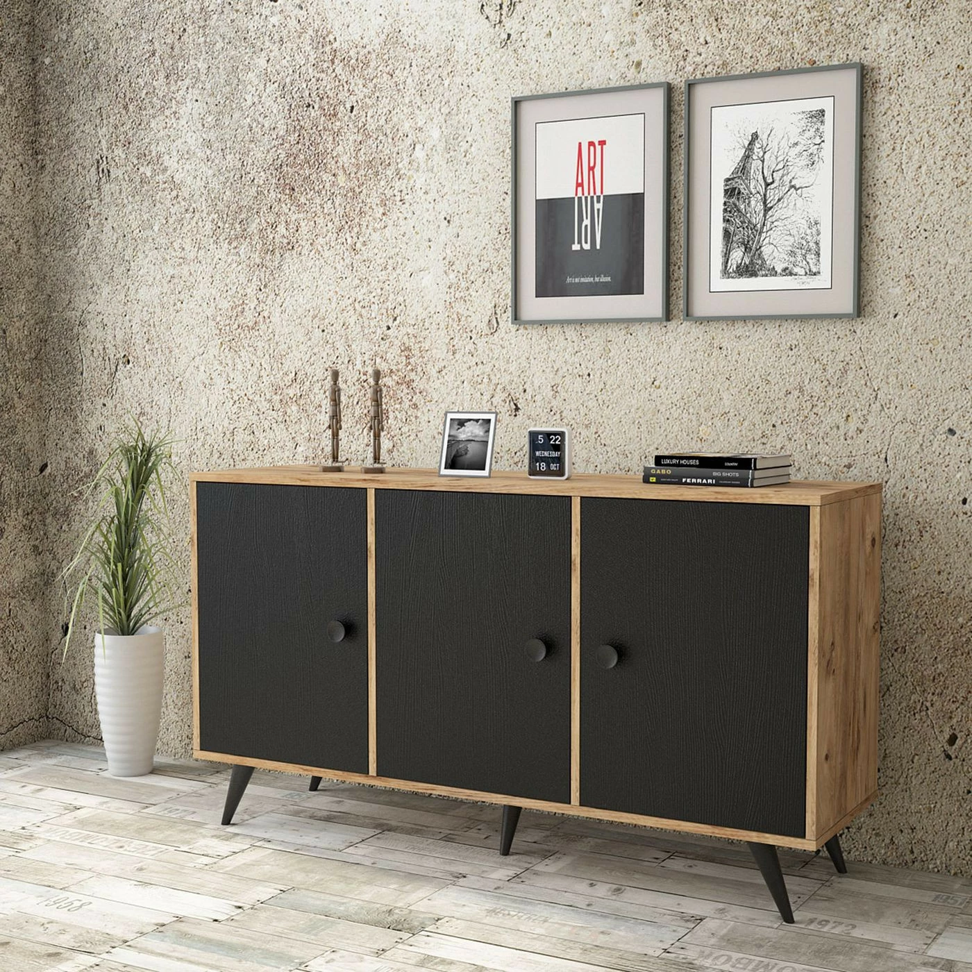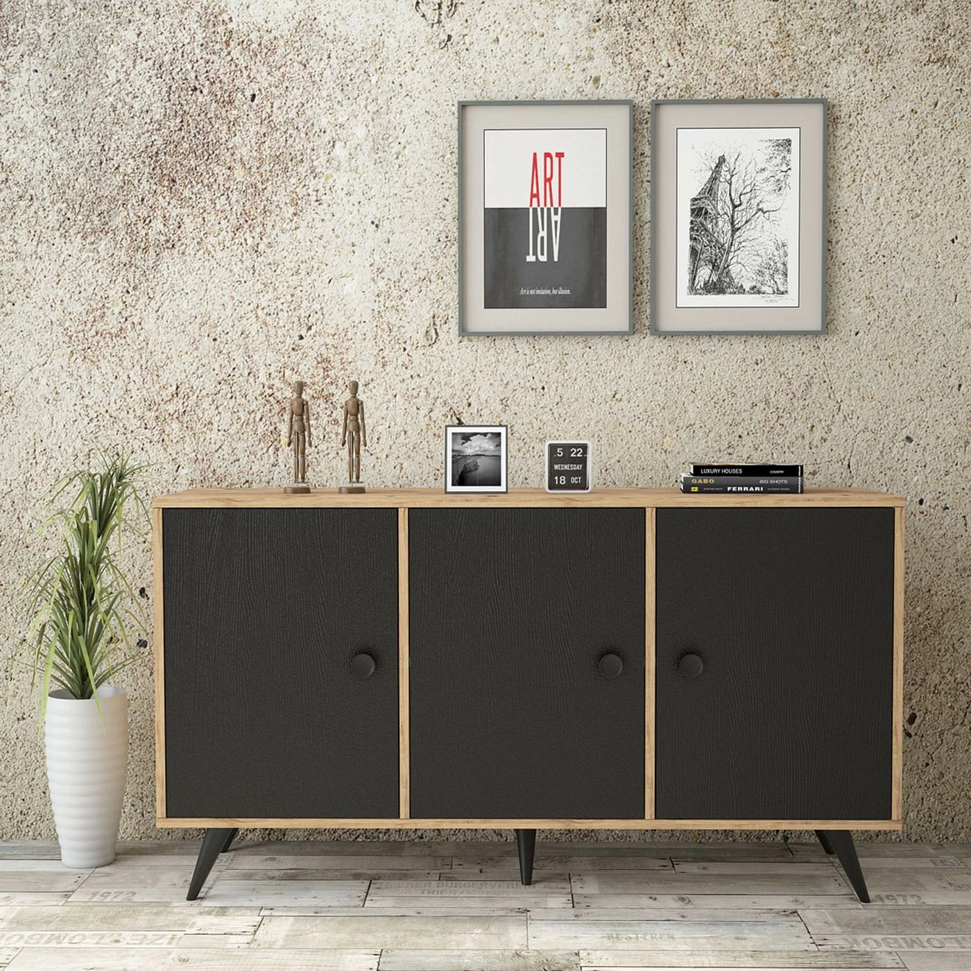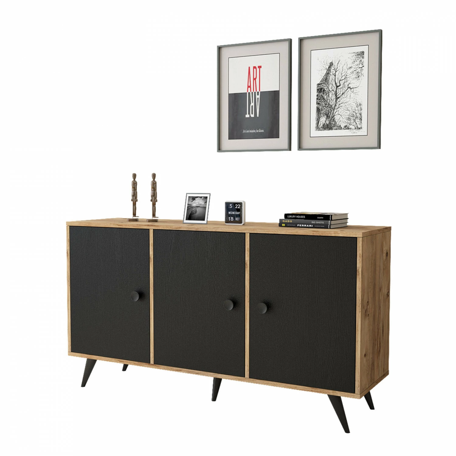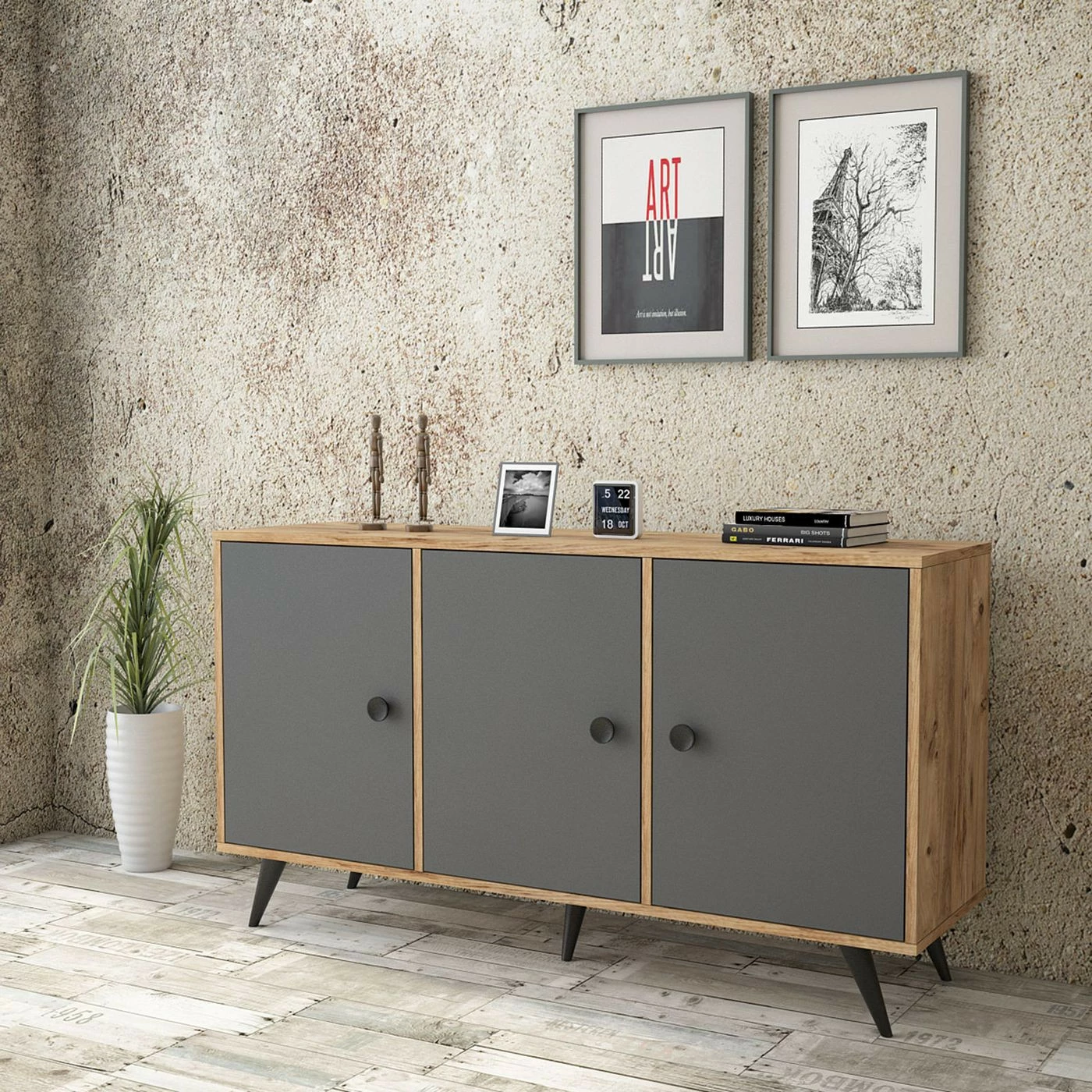 VL12-senkki. Kaunis kaksivärinen kokonaisuus sopii keittiön lisäksi olo- ja makuuhuoneeseen. Senkissä on kolme ovea.