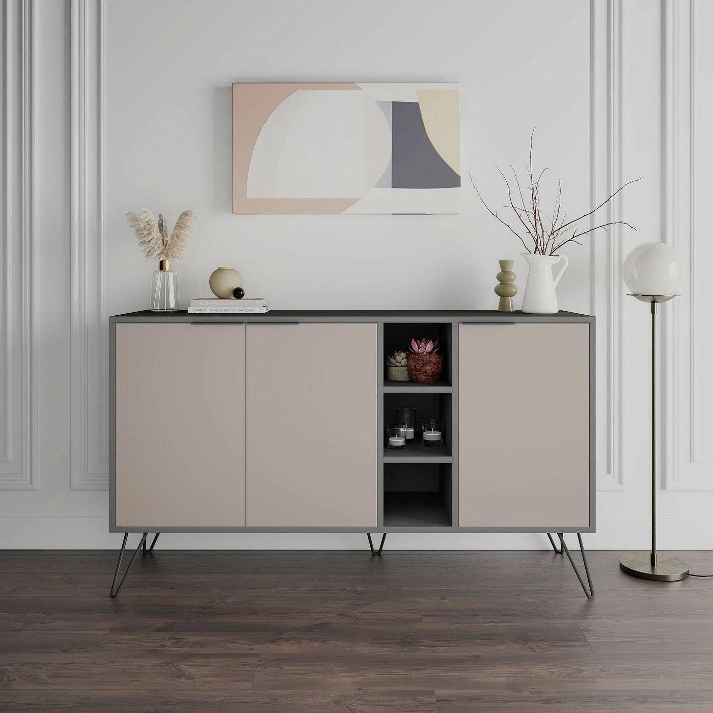 Soma kaappi toimii senkkinä keittiössä tai monipuolisena säilytyskaappina muissa huoneissa.