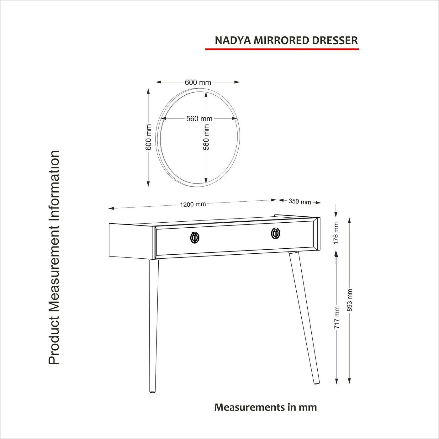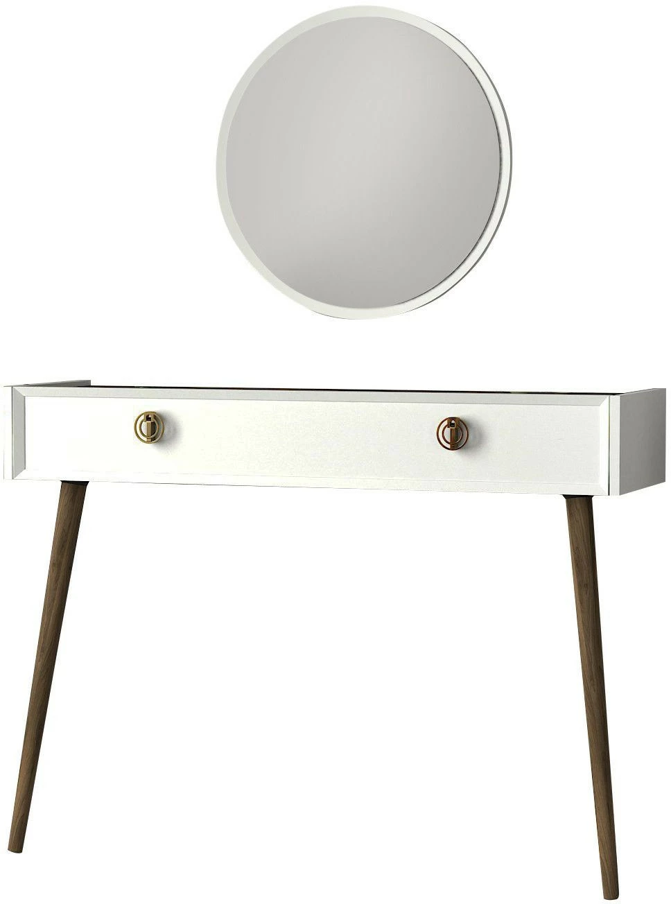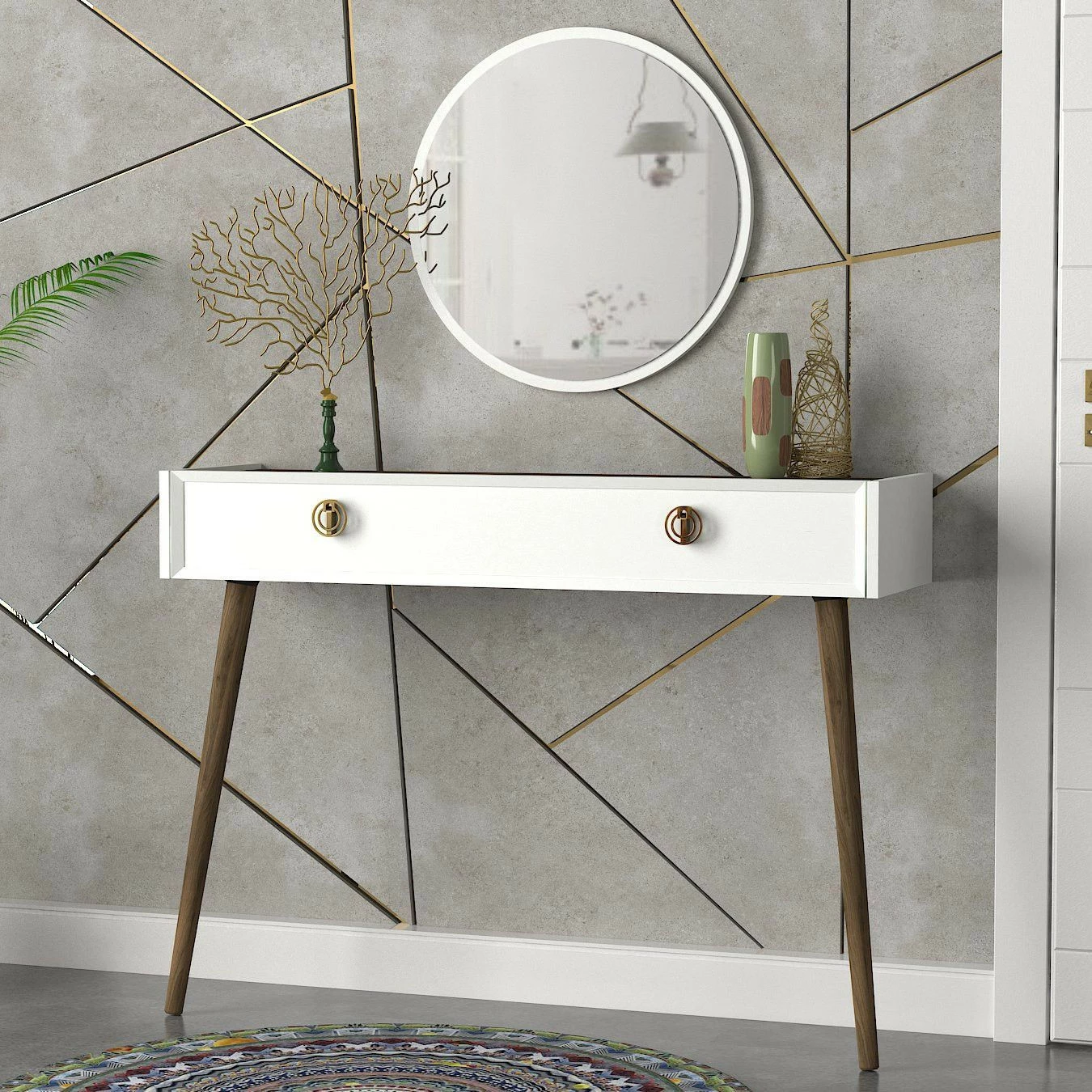 Sivupöytä ja pyöreä peili. Kaunis kokonaisuus sopii erinomaisesti eteiseen.