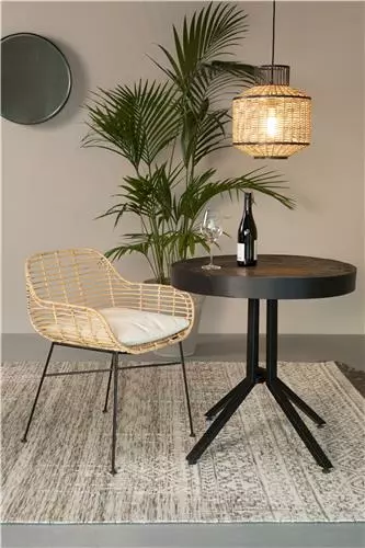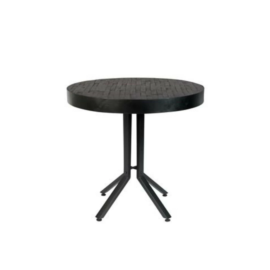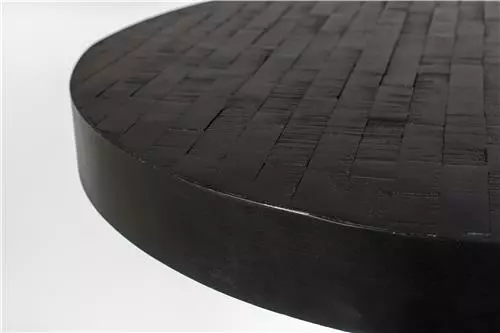Black -sarjan musta baaripöytä on tehty mustista tiikkisauvoista sekä rautarungosta. Tukeva pöyreä baaripöytä on oivallinen ravintoloihin sekä lounge-tiloihin, mutta myös pienen kodin tarpeisiin. Saatavilla tilauksesta myös neliskanttisena versiona sekä korkeammalla jalalla baari-versiona.