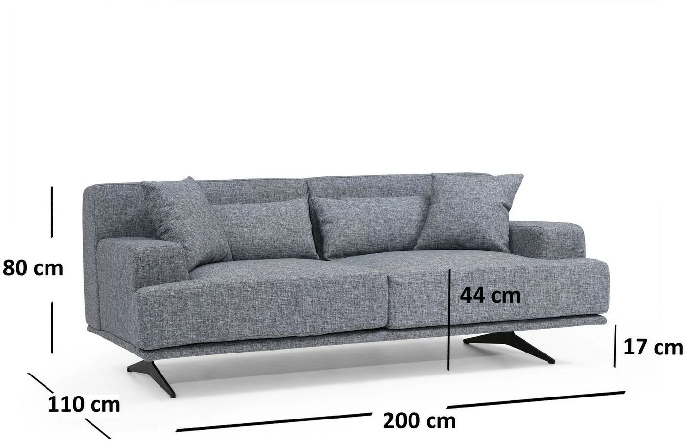 Kahdenistuttavassa Bentley-sohvassa on tekstiiliverhoilu ja mattamustat metallijalat. Bentley on klassinen malli, johon ei kyllästy koskaan.