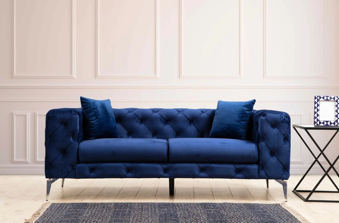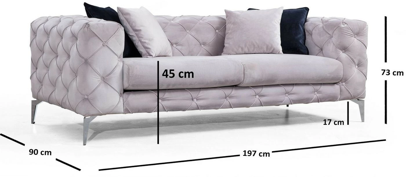 Como-sohvassa on upea tekstiiliverhoilu ja kauniisti muotoillut jalat. Sohvalle mahtuu mukavasti kaksi istujaa.