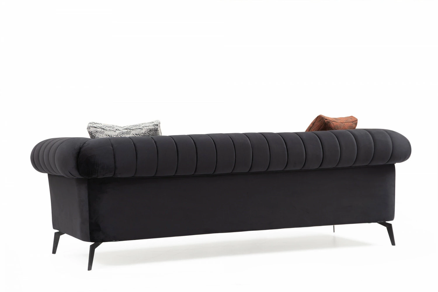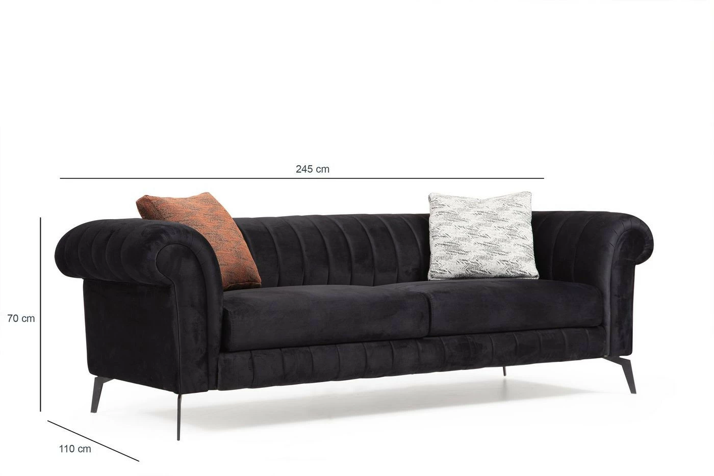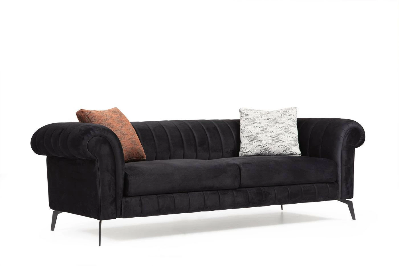 Kolmelle mitoitettu Costa D on samaan aikaan ihanan muhkea mutta ilmeeltään kevyt. Sohvassa on kaunis tekstiiliverhoilu ja mattamustat metallijalat. Mukana toimitetaan kaksi koristetyynyä.