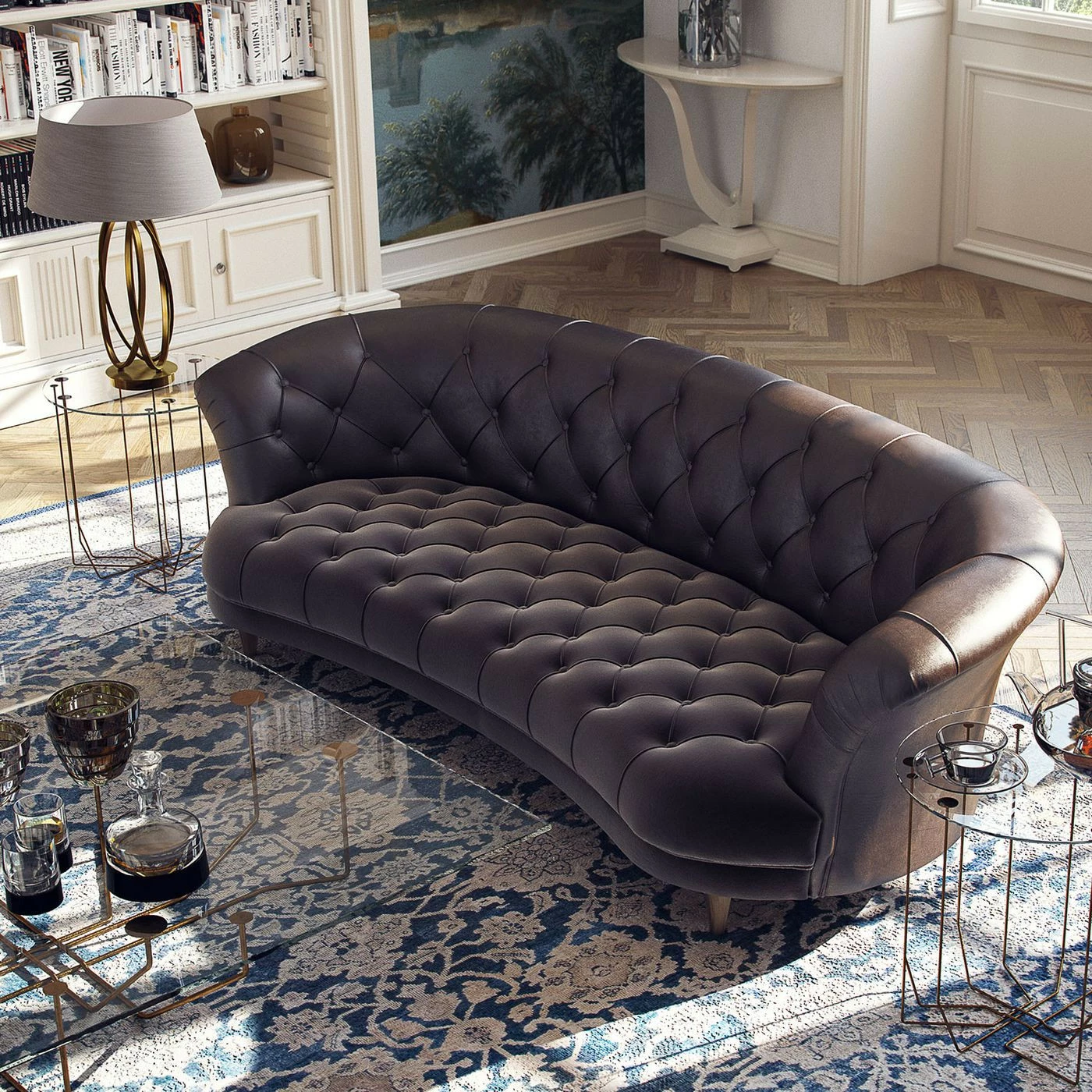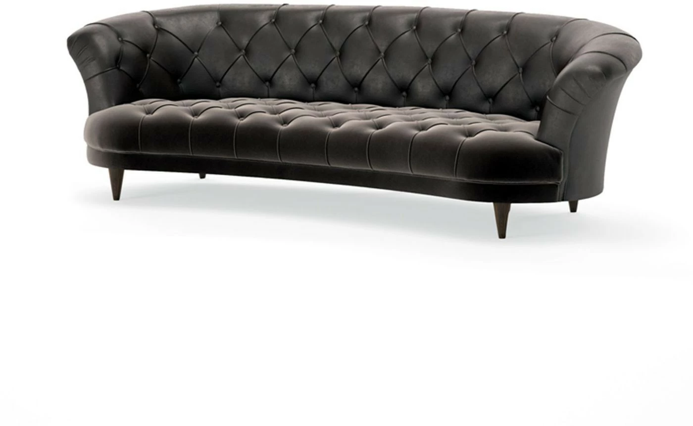 Kolmelle istujalle mitoitettu ruskea Dolmabahce-sohva. Sohvassa on samettiverhoilu ja sirot puiset.