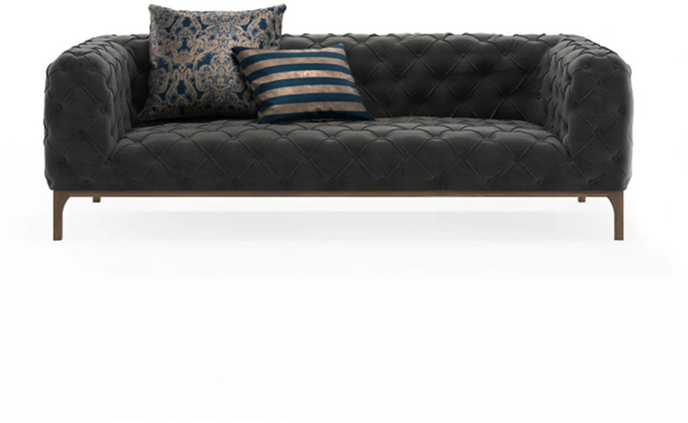 Kahdenistuttavan Fashion-nahkasohvan verhoilu on nupukkia, jalat puuta.
