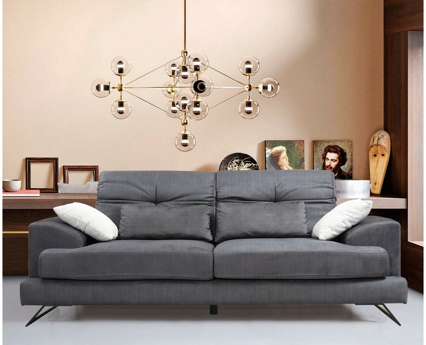 - Materiaalin tarkenne: Runko pyökkiä/lastulevyä, verhoilu polyesteriä, jalat mattapintaista metallia