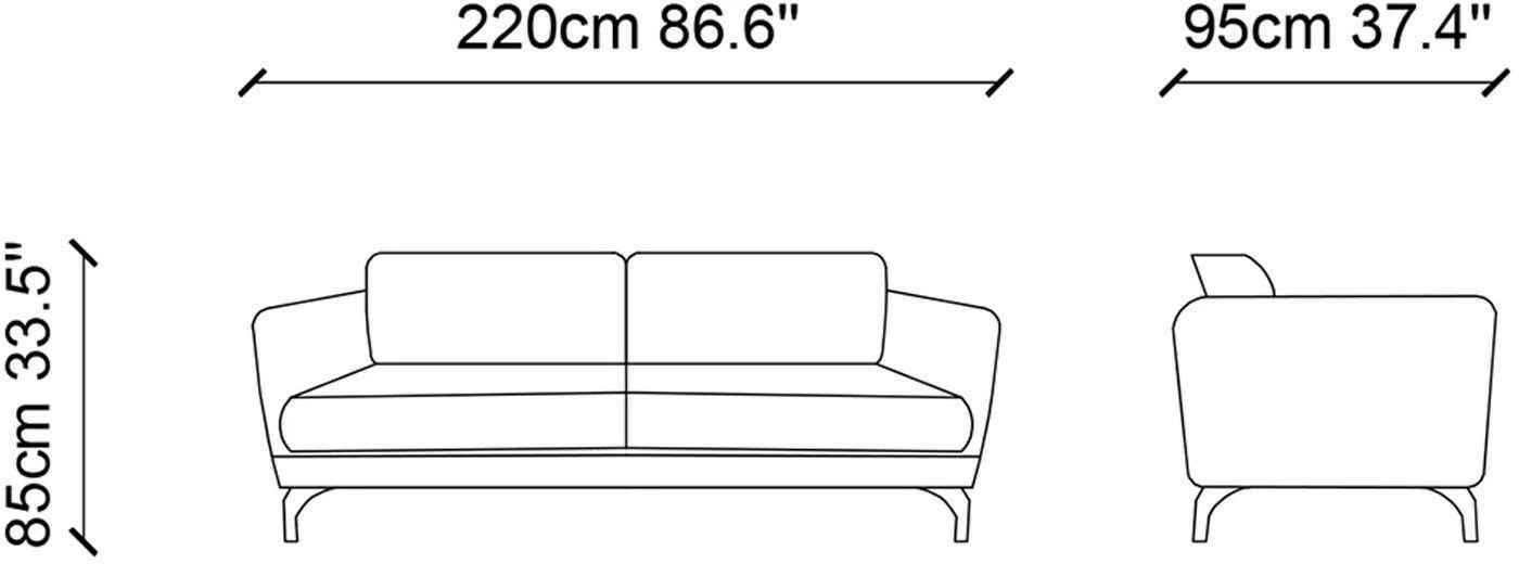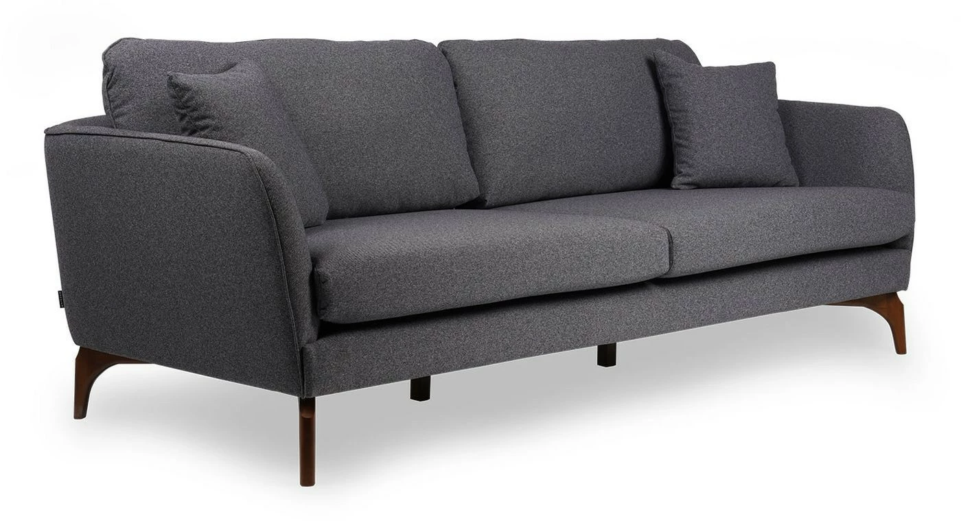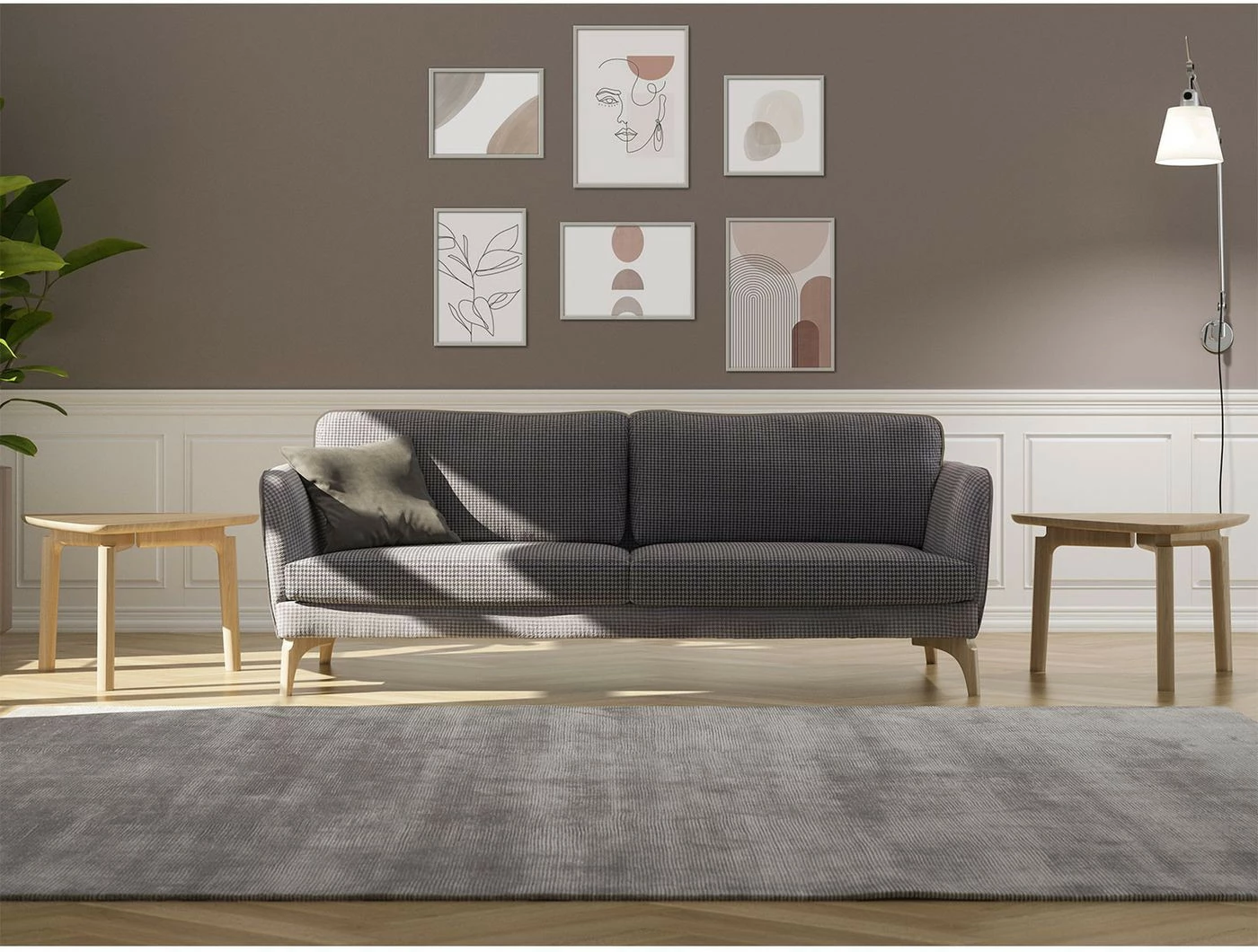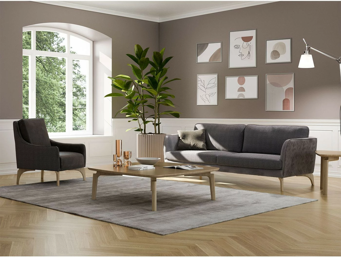 Kolmelle istujalle mitoitetussa Giza-sohvassa on kaunis, ajaton kuosi. Gizan verhoilu on kangasta, jalat puuta.