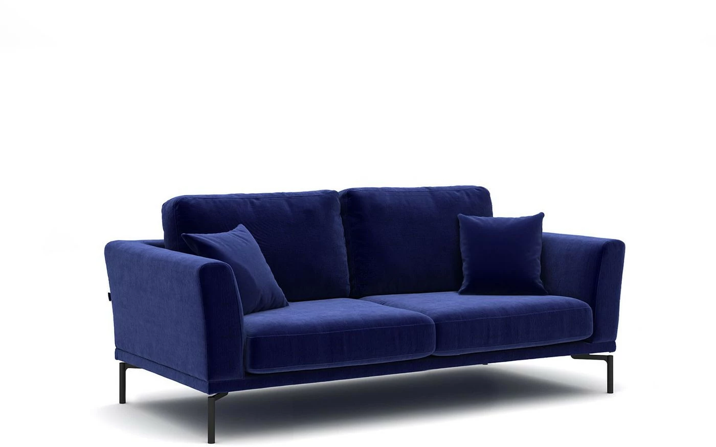 Kahdenistuttava Jade-sohva, jossa on samettiverhoilu ja metallijalat.