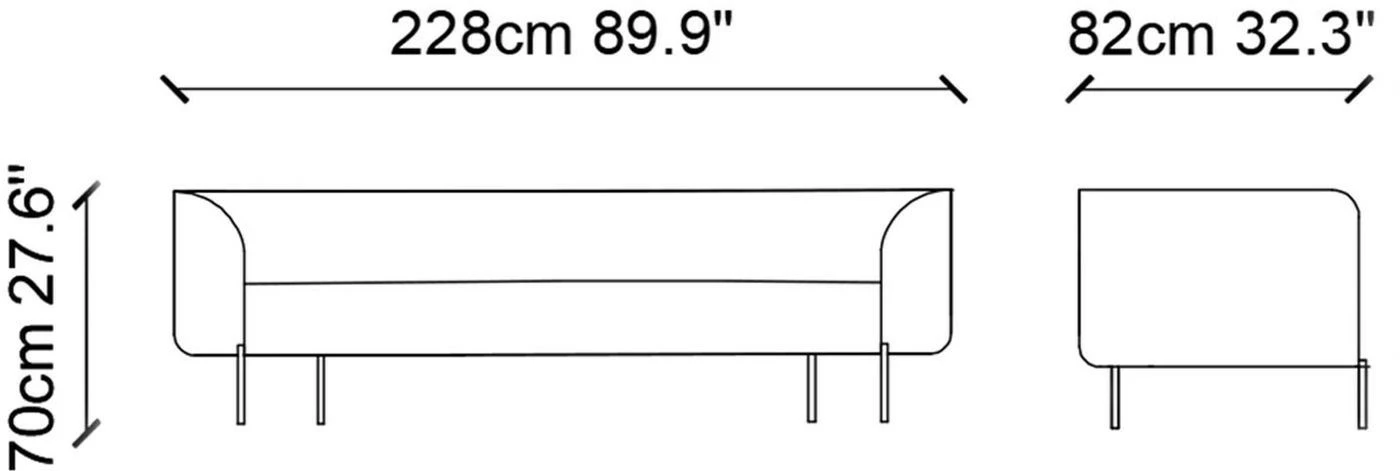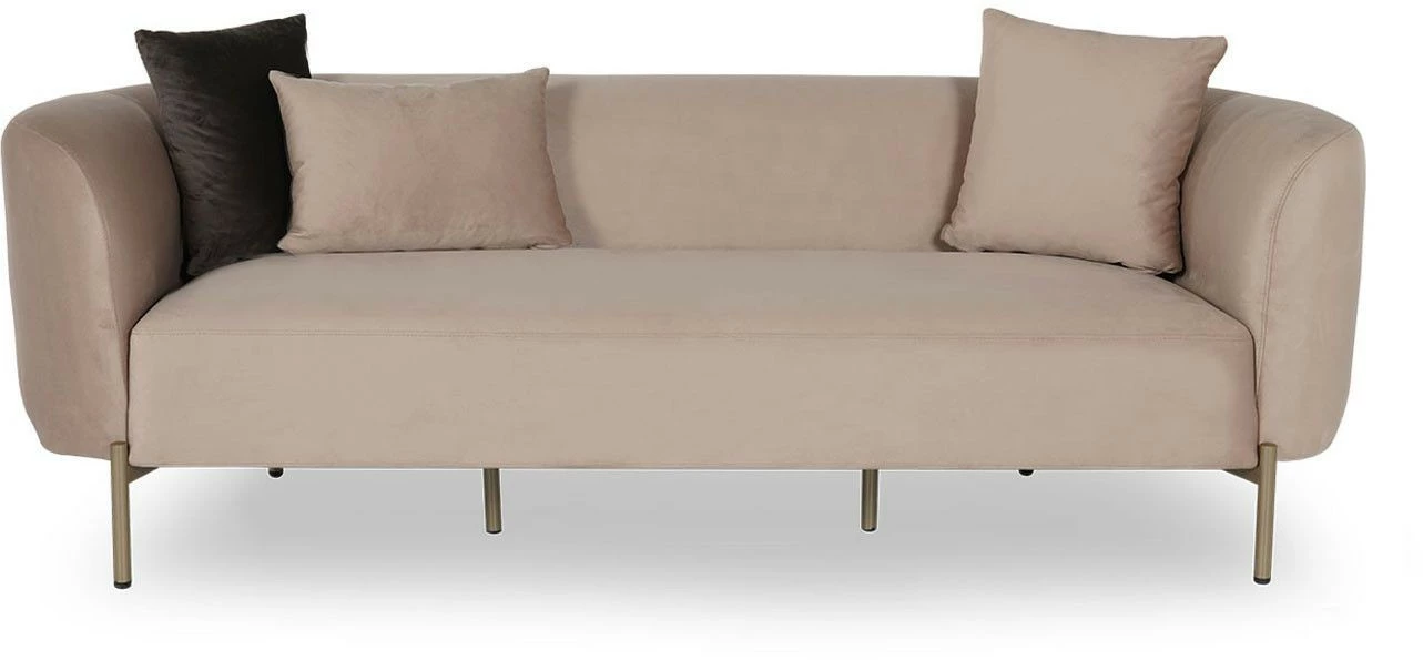 Kolmenistuttavassa Macaroon-samettisohvassa on samettiverhoilu ja metallijalat.