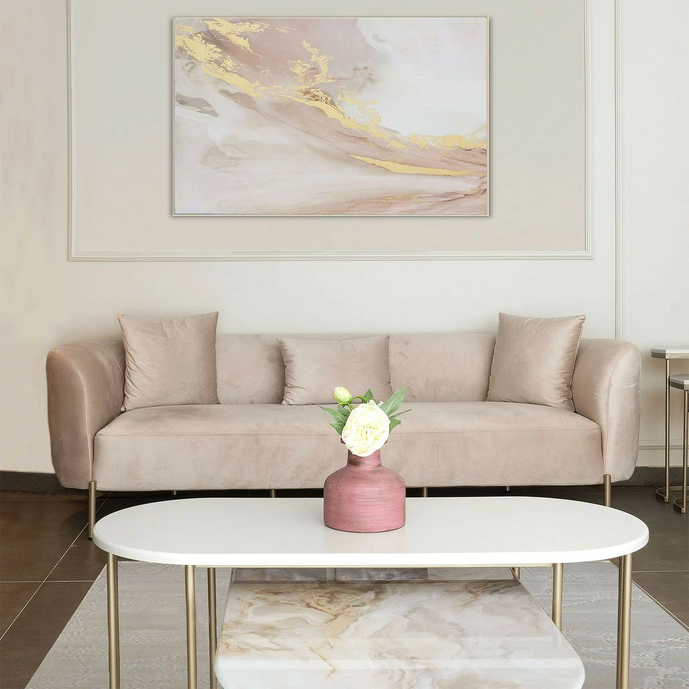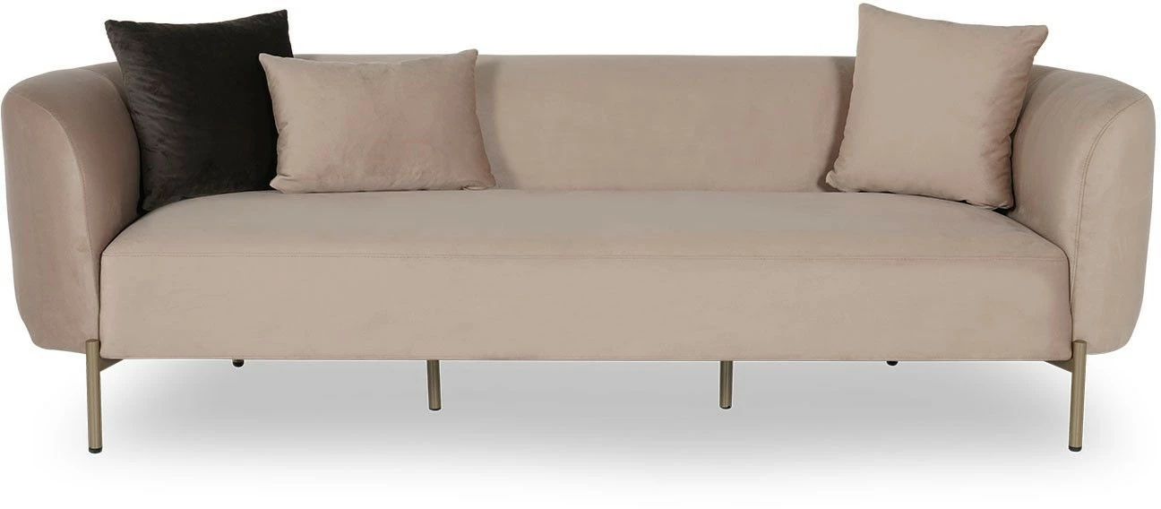 Neljänistuttavassa Macaroon-samettisohvassa on samettiverhoilu ja metallijalat.