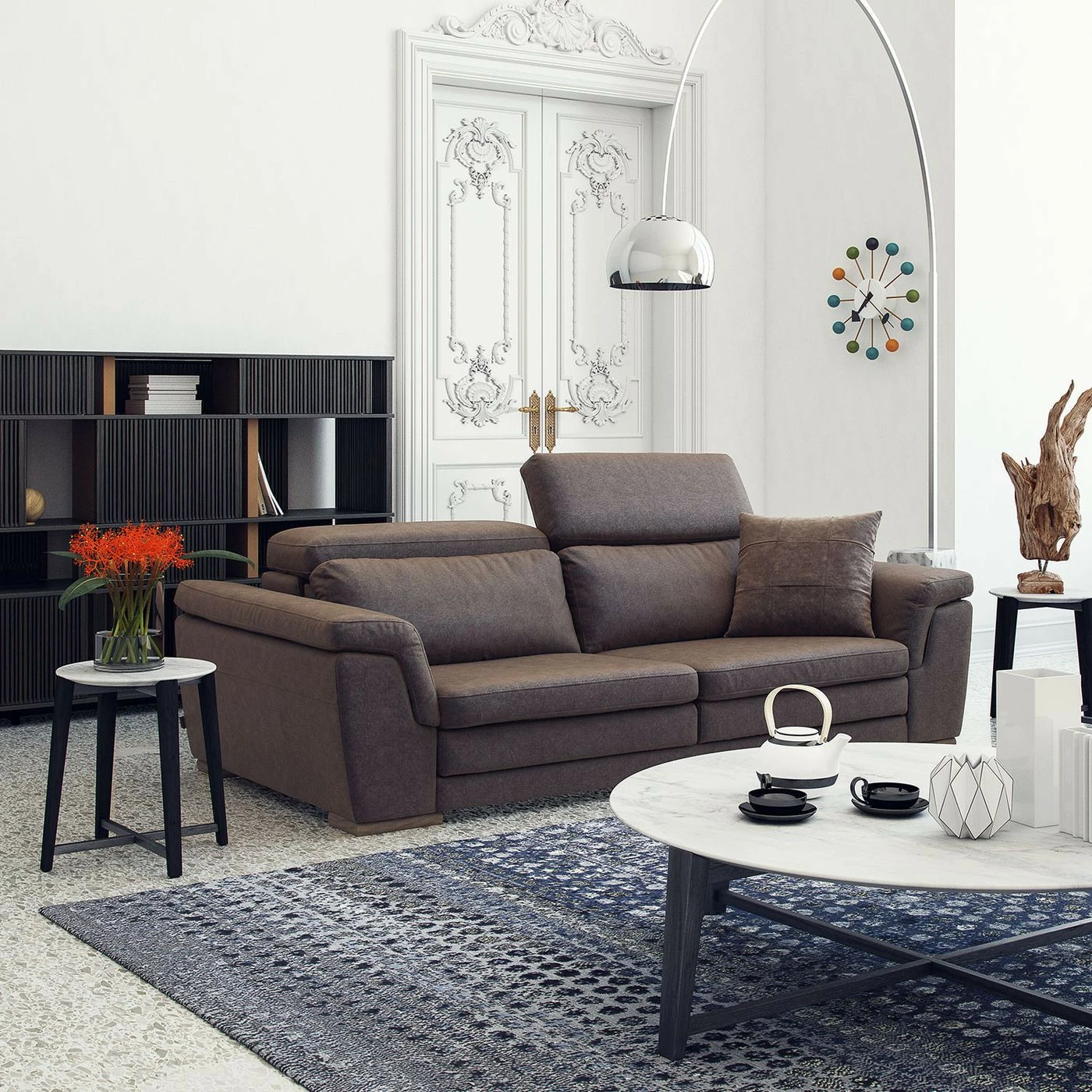 Kolmelle istujalle juuri sopiva Mardini-sohva on passeli valinta, kun etsit perinteistä, muhkeaa nahkasohvaa. Sohvassa on nupukkiverhoilu ja puiset jalat. Ruskeanharmaa väri sopii monenlaiseen sisustukseen.