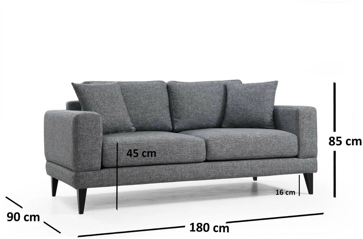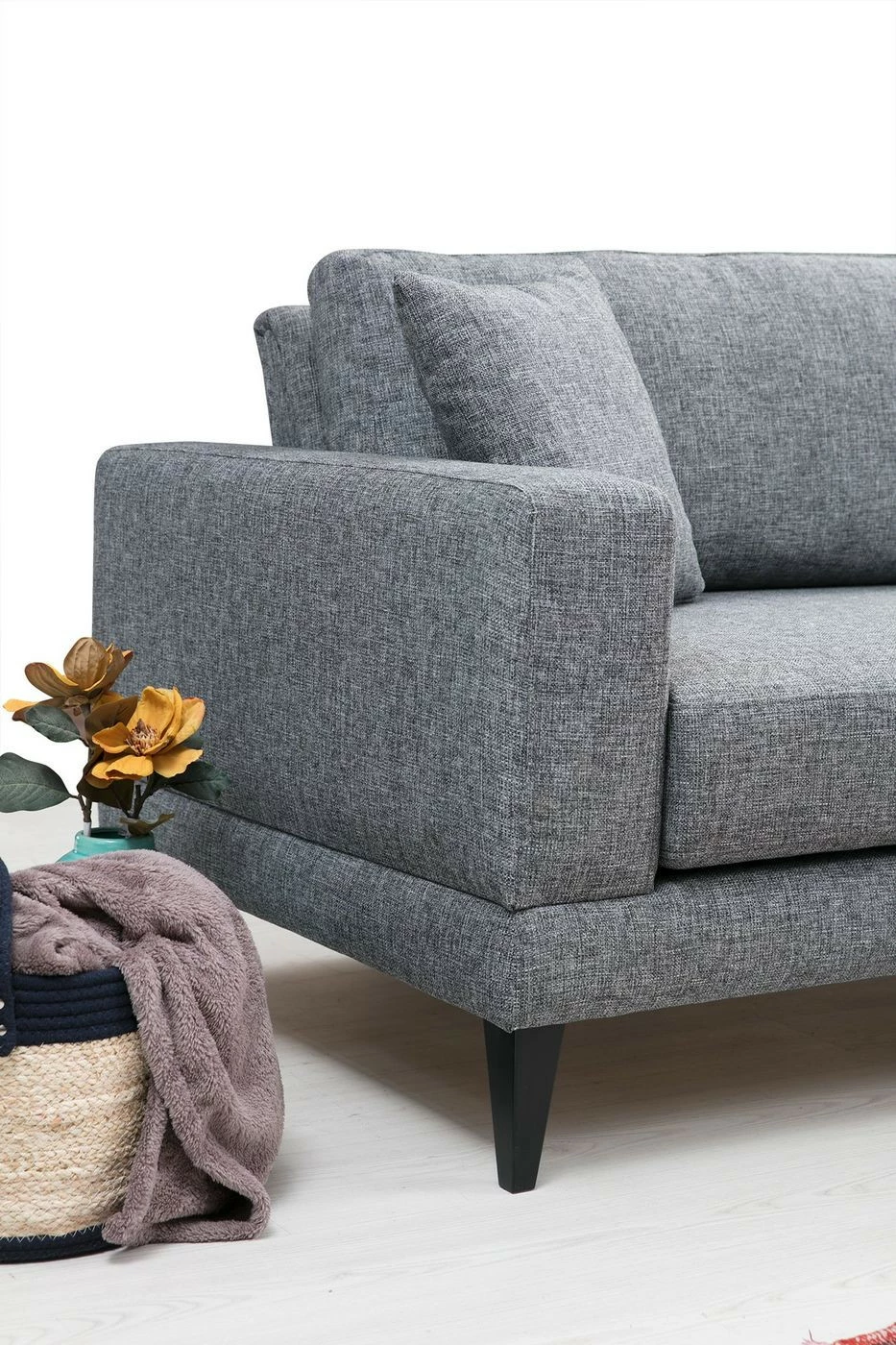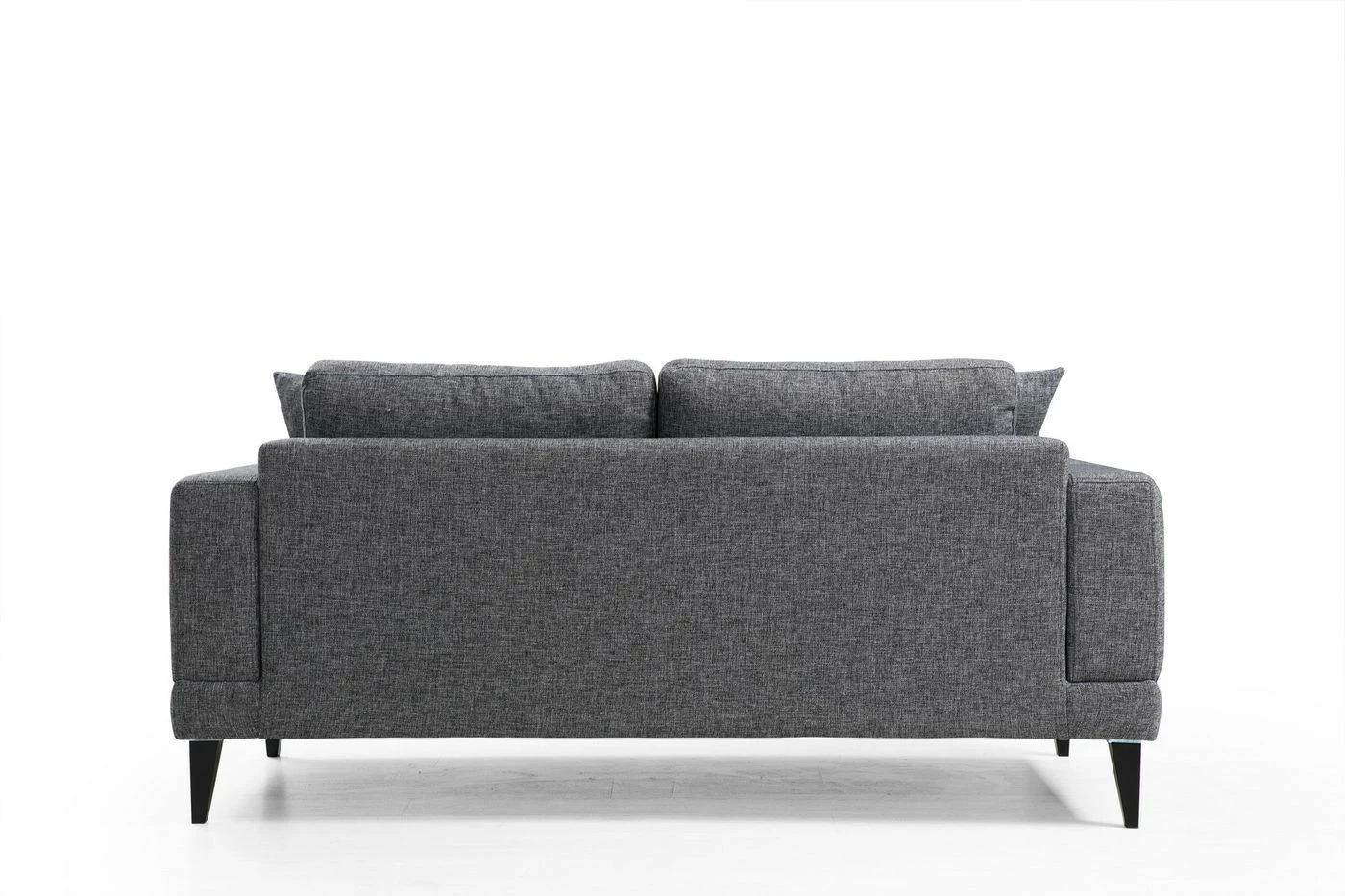 Harmaa kahdenistuttava Nordic-sohva sopii pohjoismaiseen makuun. Sohvassa on tekstiiliverhoilu ja muoviset jalat.