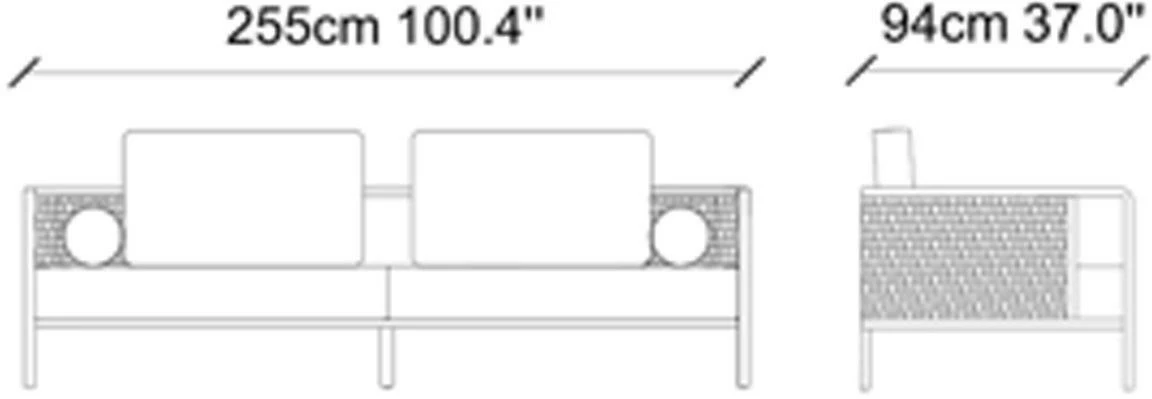Hurmaava Peanut-sohva on samaan aikaan moderni että sopivan retro. Sohvassa on kangasverhoilu ja kapea puinen runko. Neljälle istujalle mitoitettu malli.