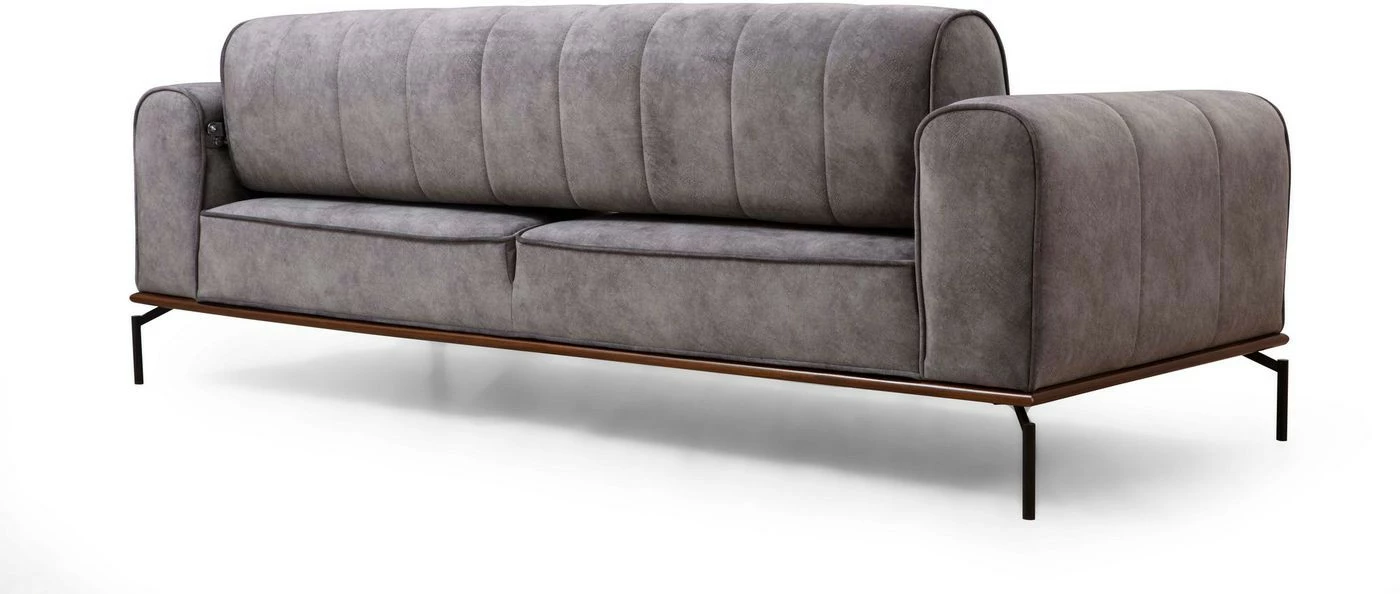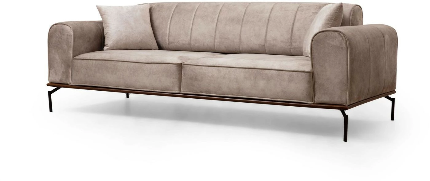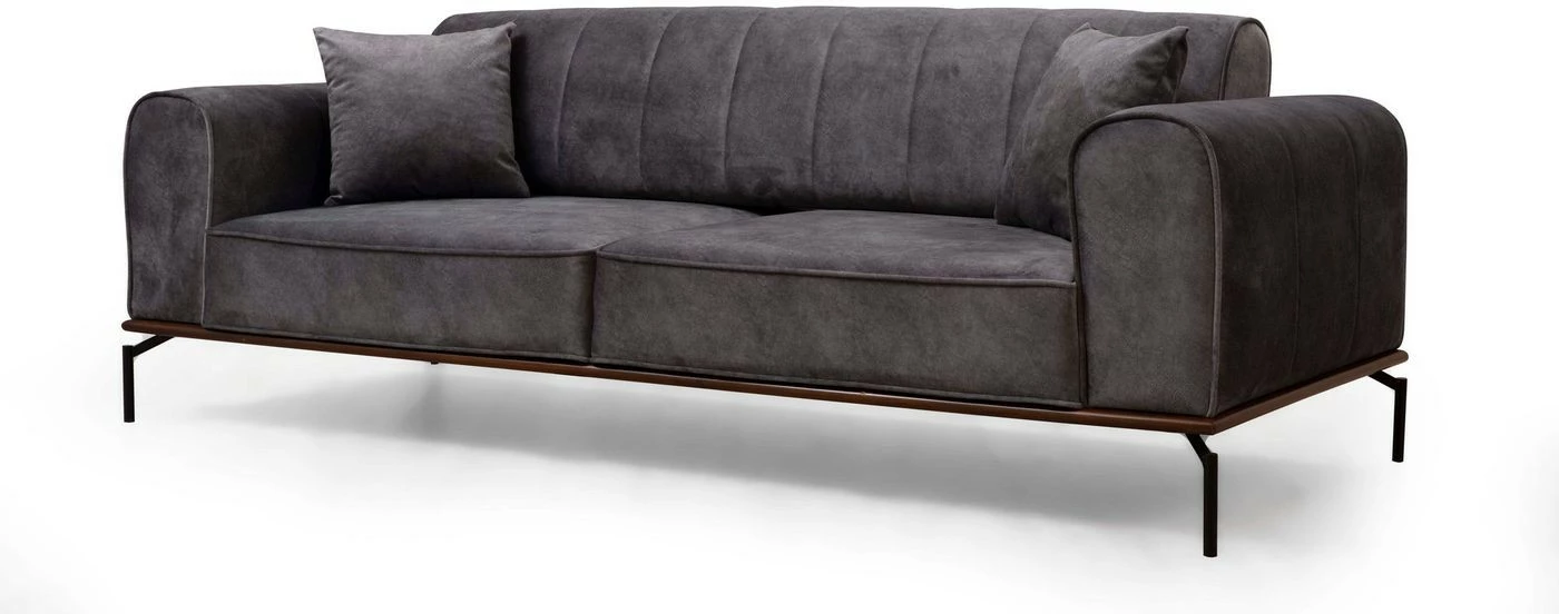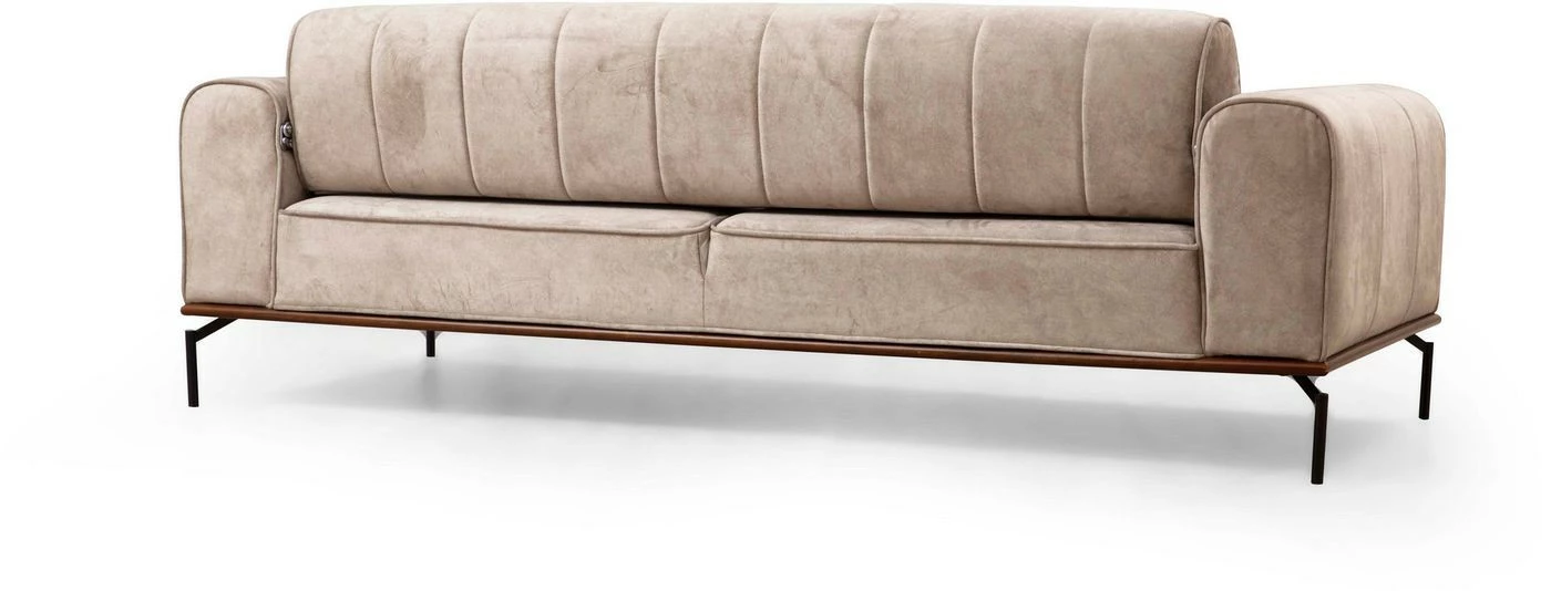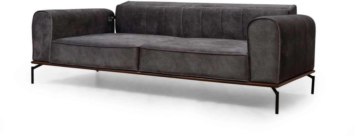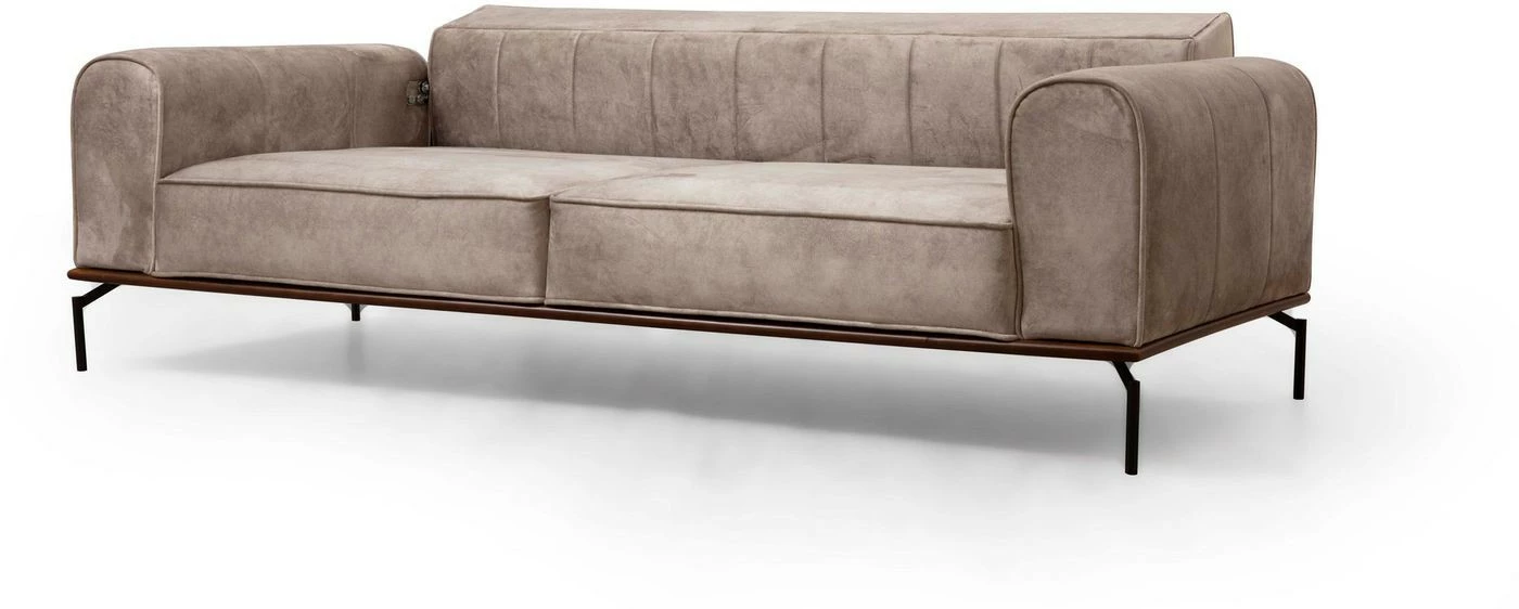 Kangasverhoiltu Siesta Plain -sohva on mitoitettu kolmelle istujalle. Selkänojassa on säätömekanismi. Mattamustat jalat ovat metallia.