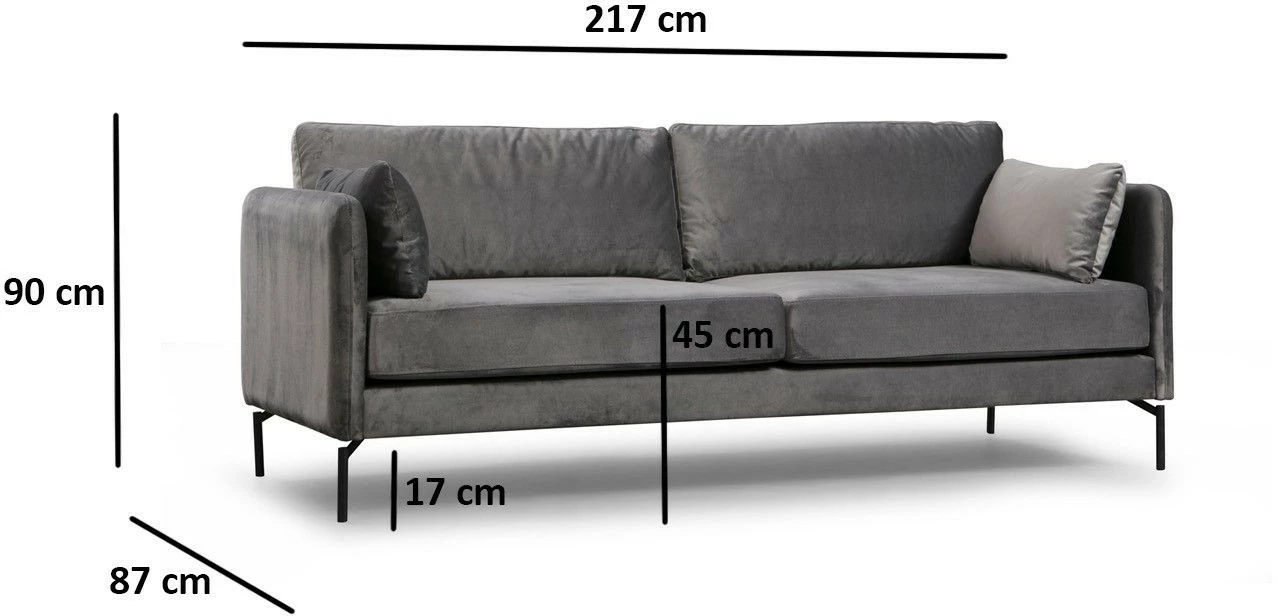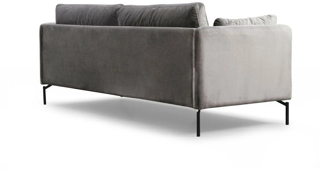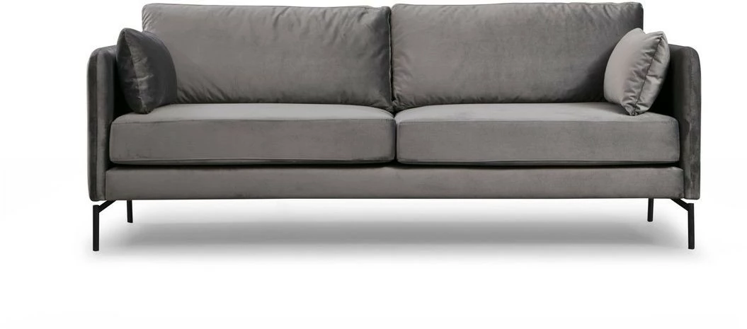 Kolmelle istujalle sopiva Sino on kaunis sohva, jossa on tekstiiliverhoilu ja ruskeat puiset jalat.
