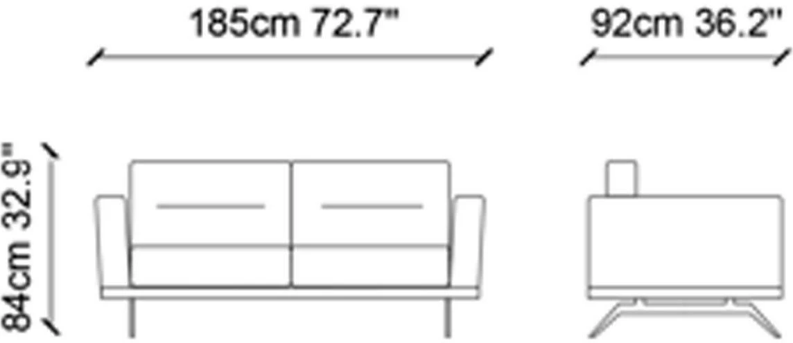 Kolmelle istujalle mitoitettu Slate-sohva sopii erinomaisesti pelkistettyyn skandisisustukseen. Kangasverhoilu ja metalliset jalat ovat raikas yhdistelmä.