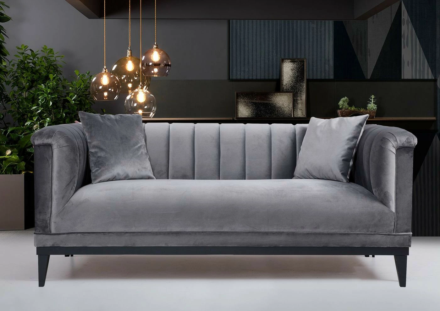 Kahdenistuttava Trendy-sohva ei ole mikään trendioikku, vaan se sopii sekä modernin että perinteisemmän sisustuksen ystäville. Se toimii myös varavuoteena. Kangasverhoilu ja mustat puiset jalat.