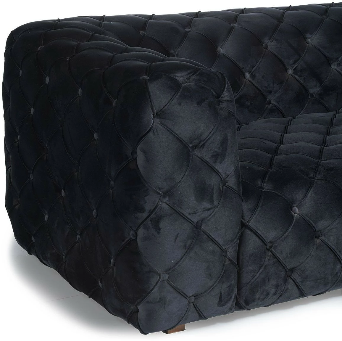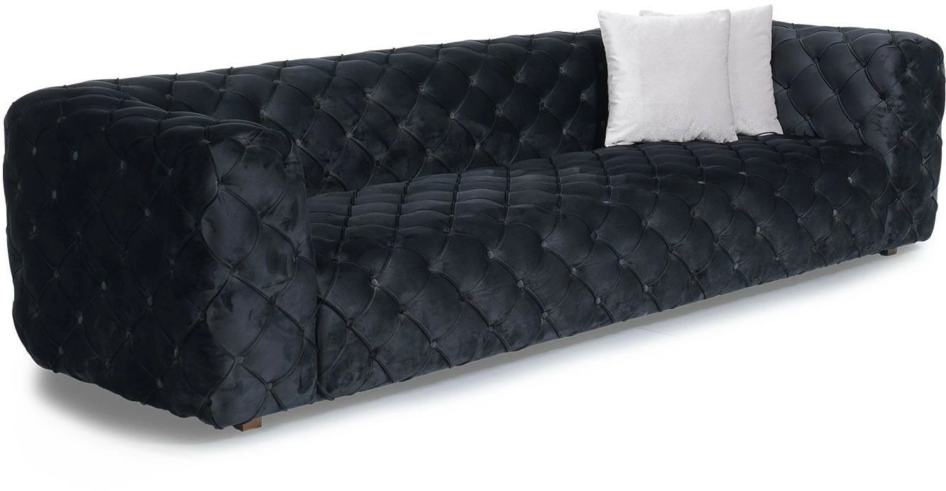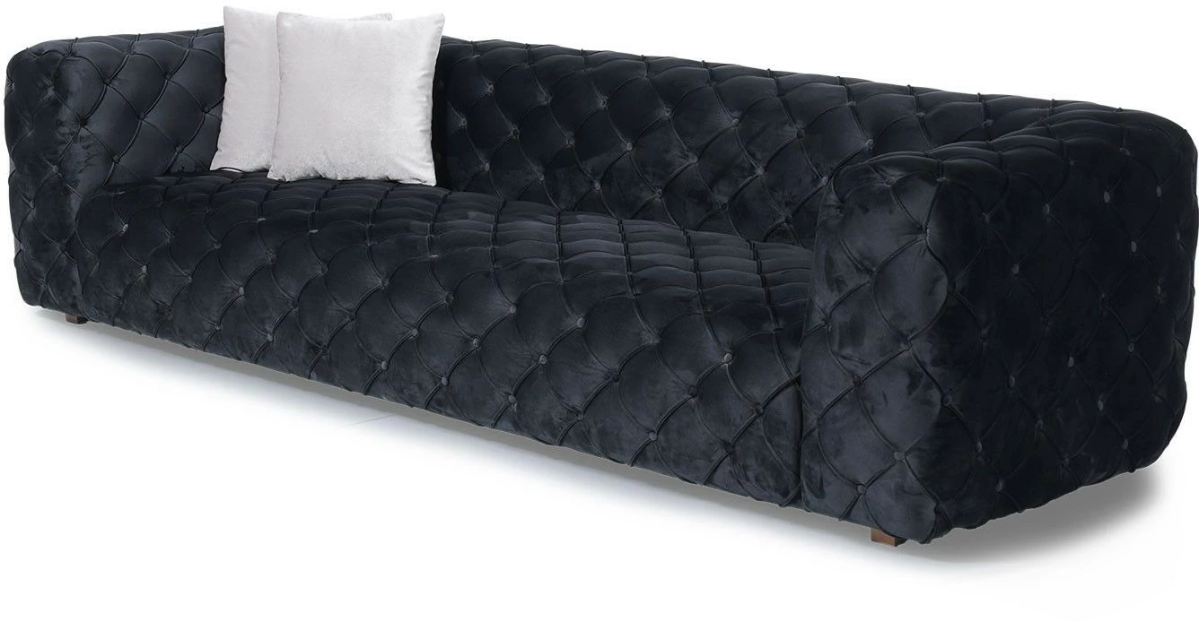 Neljälle istujalle passeli Zeus-samettisohva on suorastaan jumalainen ilmestys. Jalat ovat materiaaliltaan puuta.