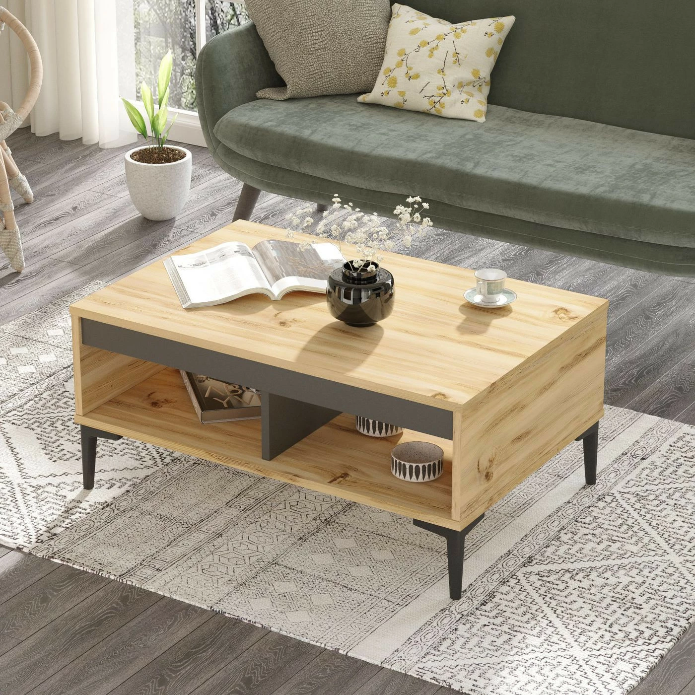 Puukuosinen AR2-sohvapöytä. Hienovaraisena tehostevärinä toimii viileä antrasiitinharmaa.
