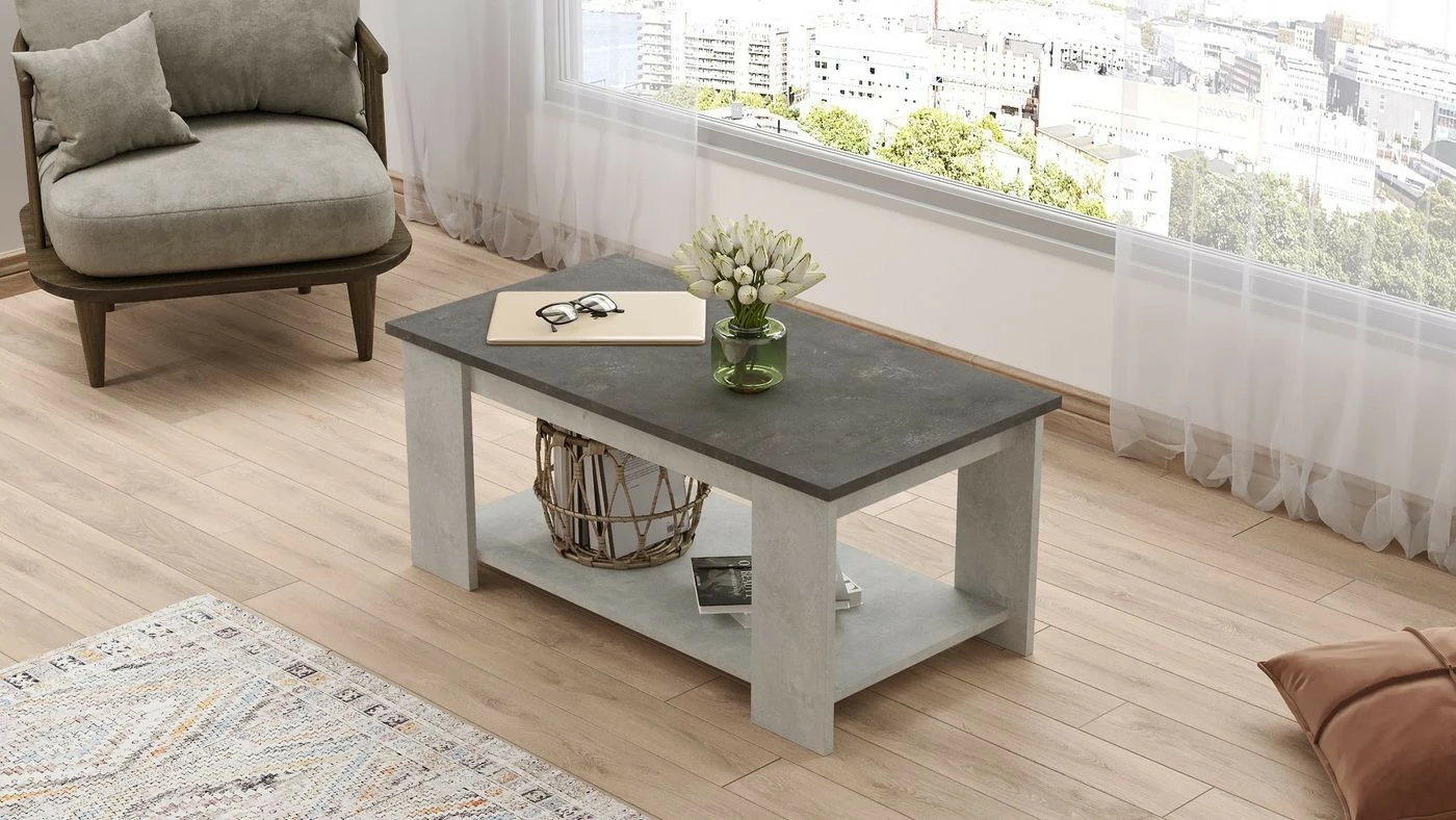 Kivikuosinen LV15-sohvapöytä. Vahvalinjainen muotoilu tekee sohvapöydästä olohuoneen katseenvangitsijan. Alatasolla on säilytystilaa kaukosäätimille, lehdille ja kirjoille.
