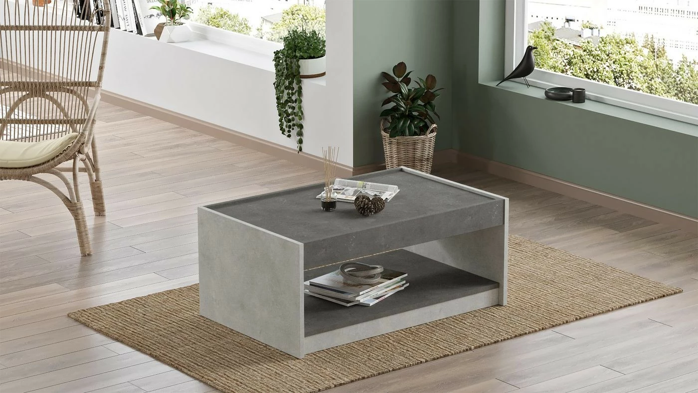 Kivikuosinen LV16-sohvapöytä. Sohvapöydässä on pelkistetty muotoilu ja moneen makuun sopiva värimaailma. Alataso tarjoaa lisää säilytystilaa.