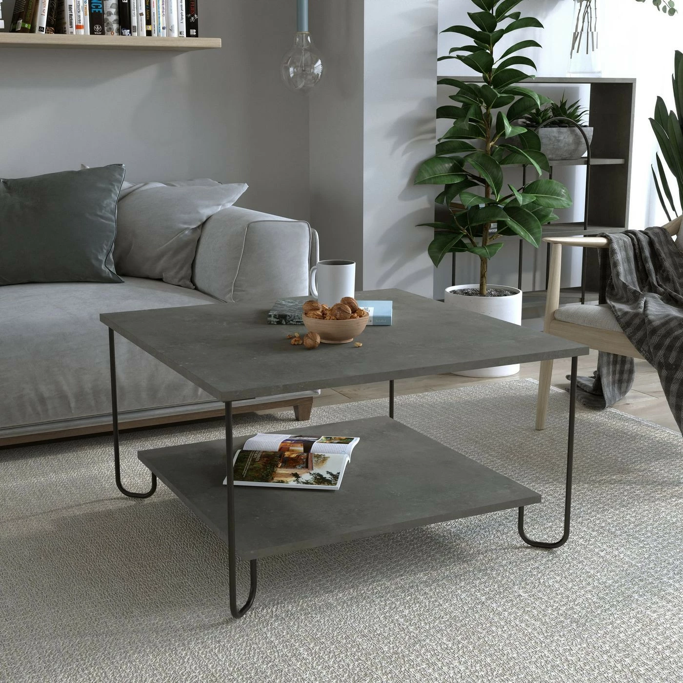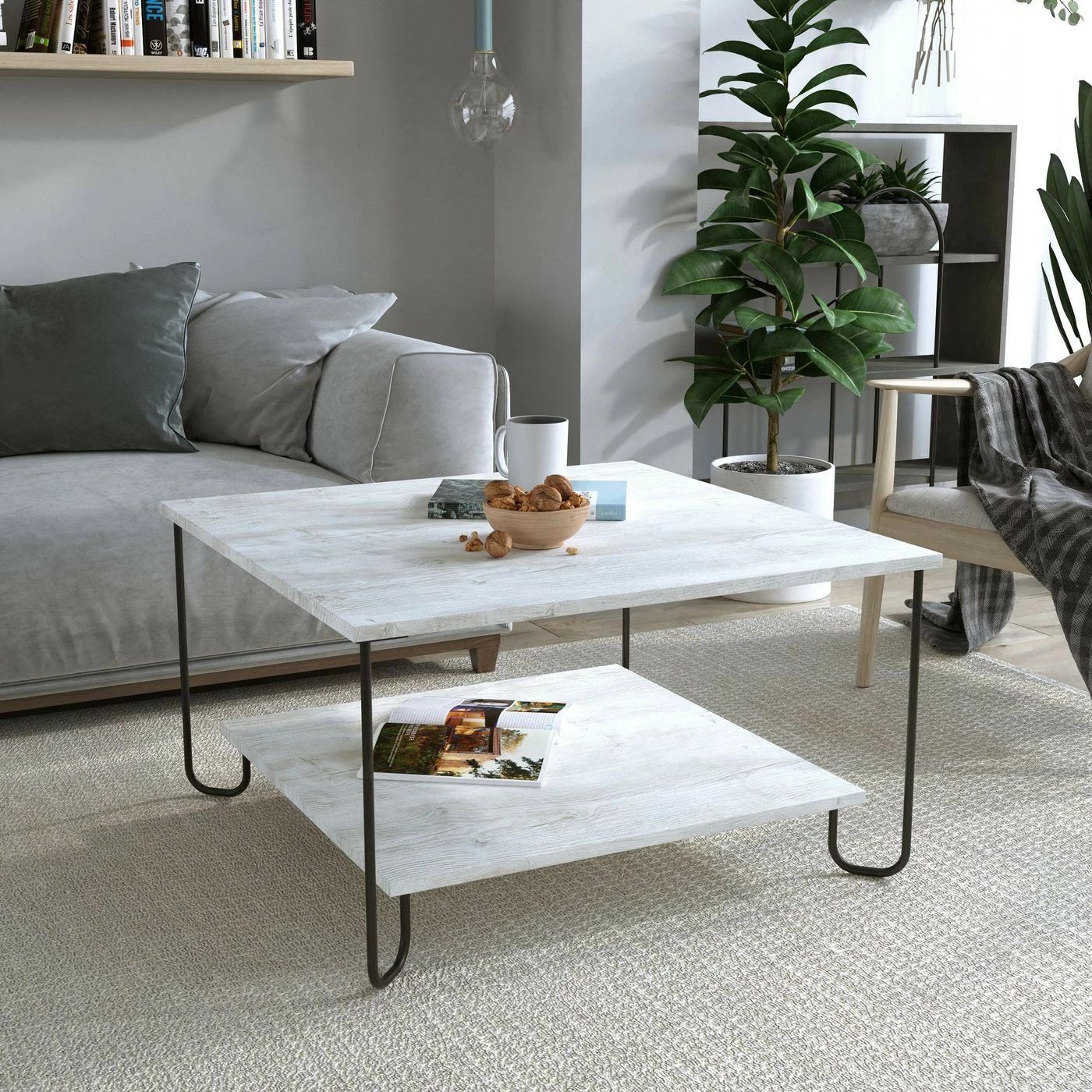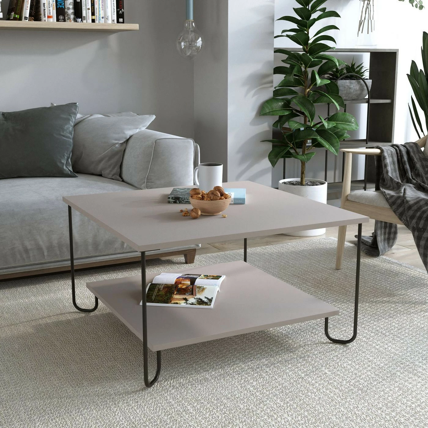 Marbo-sohvapöytä. Tilaa kahdella tasolla. Kaarevat metallijalat viimeistelevät omintakeisen designin.
