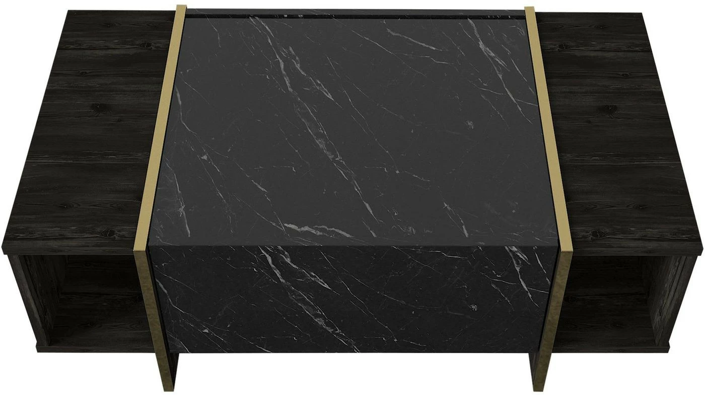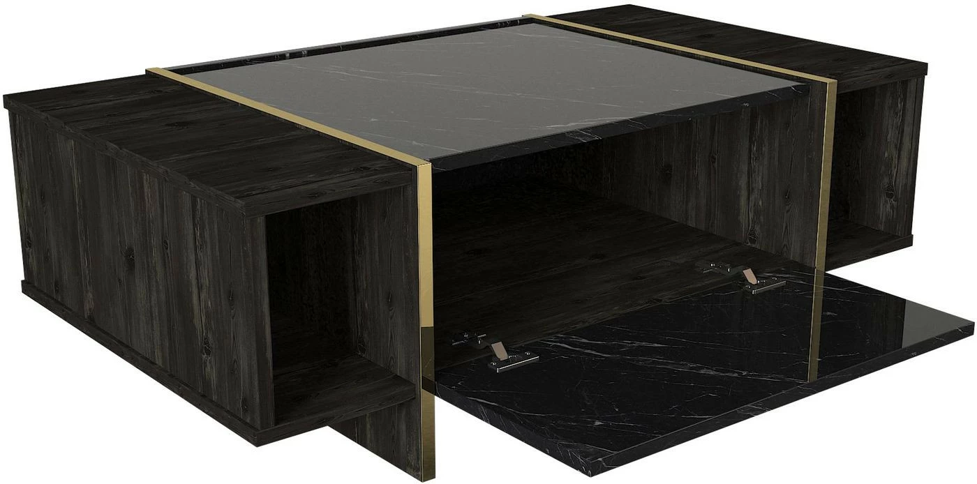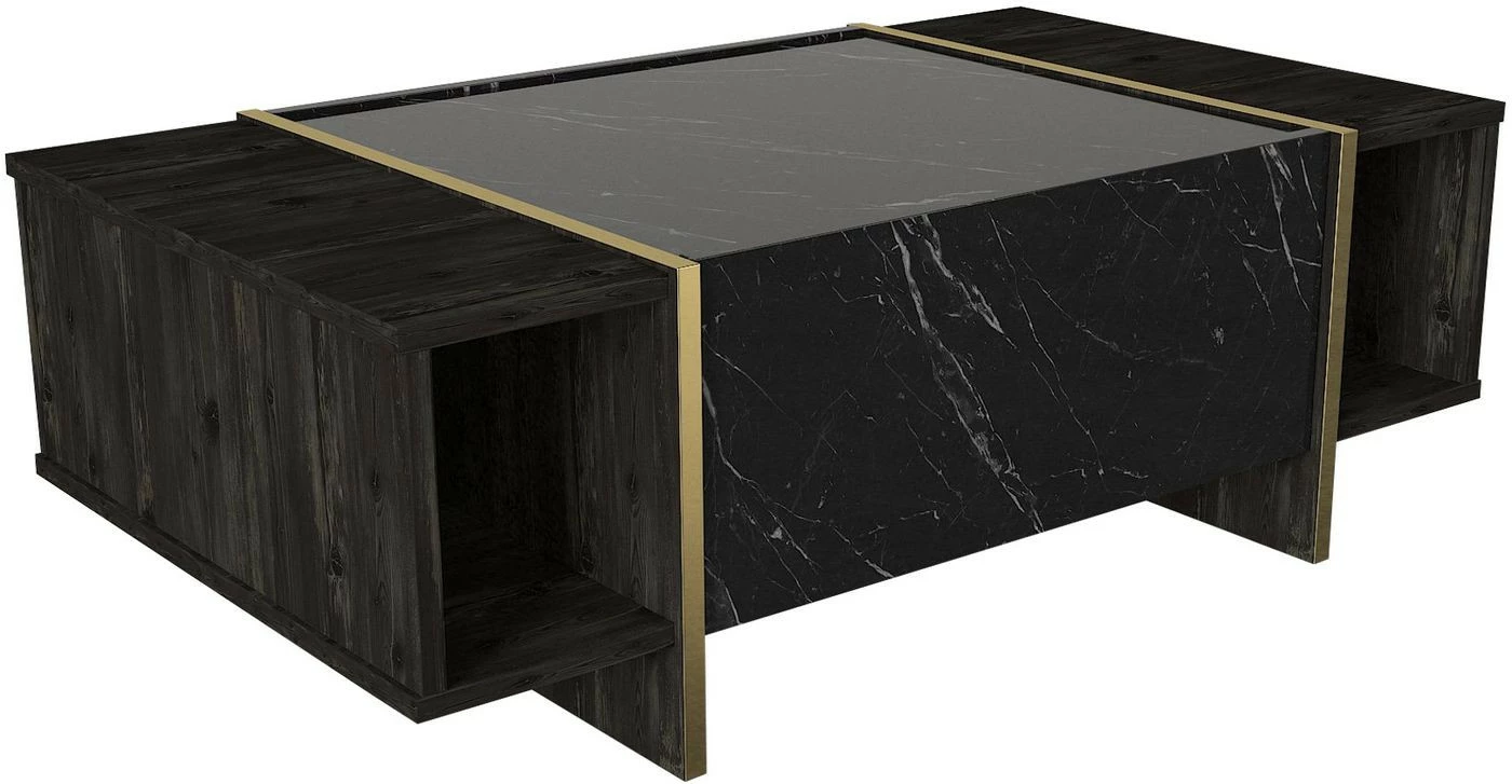 Veyron-sohvapöytä. Sivuilla olevat hyllyt tarjoavat säilytystilaa esimerkiksi kirjoille.