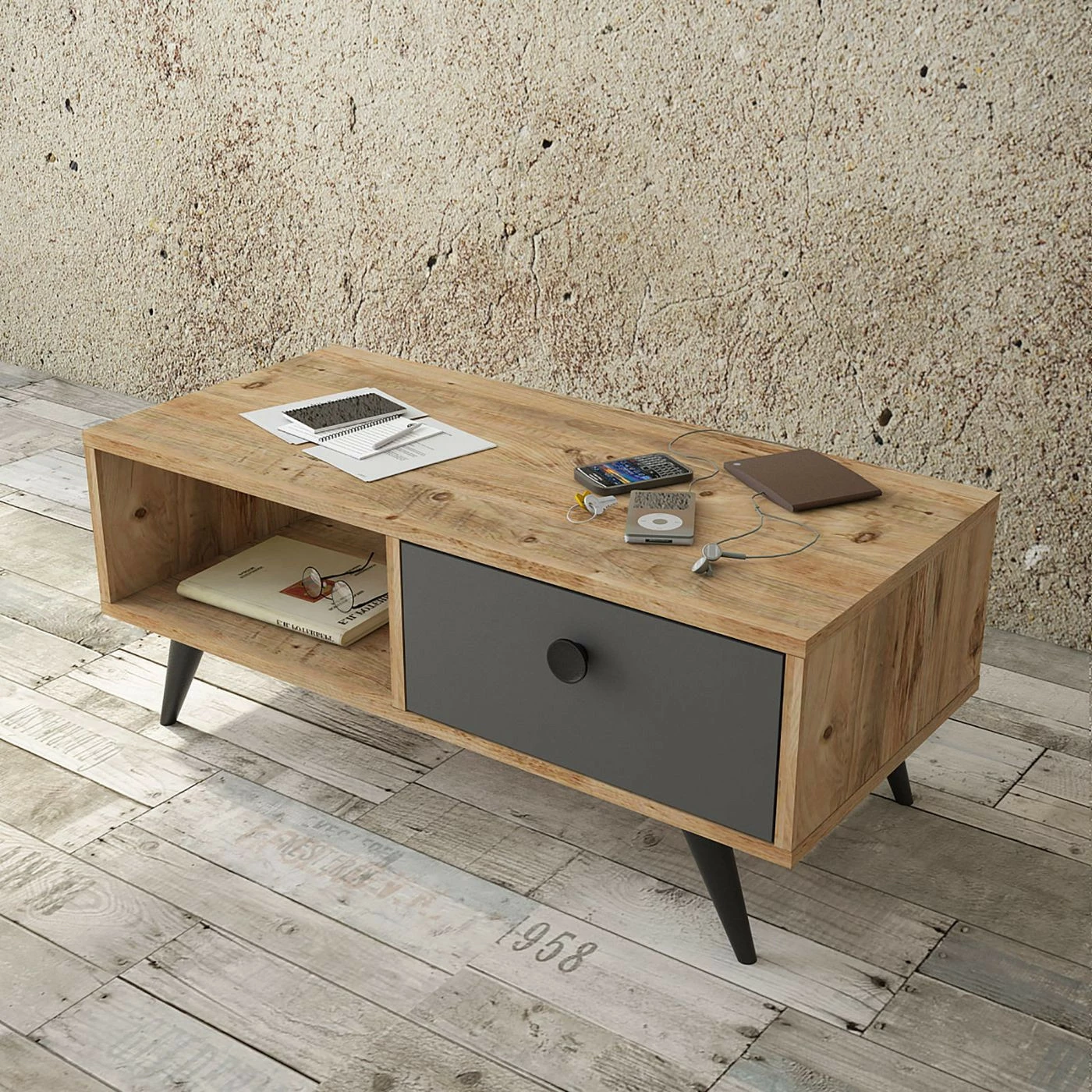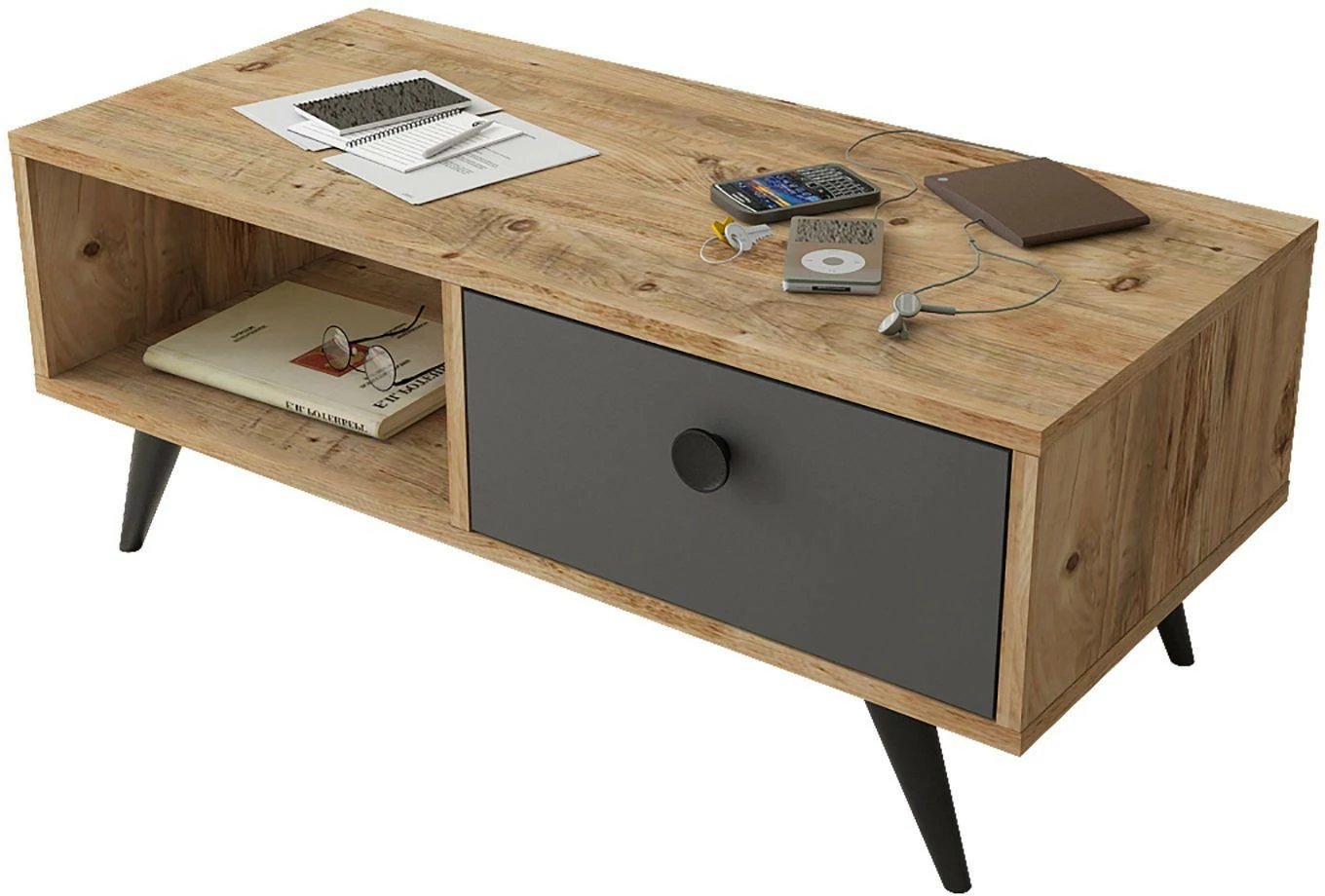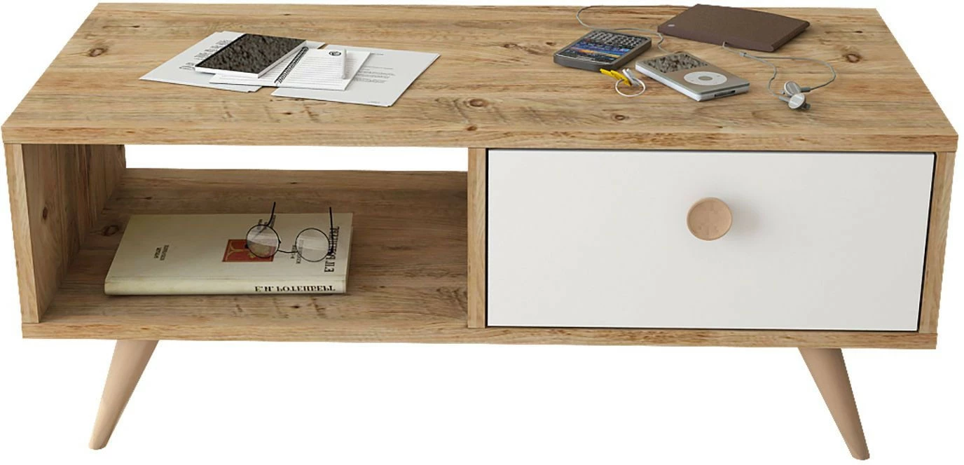 Kaksivärinen VL7-sohvapöytä. Erivärinen laatikko on tämän pöydän juju.