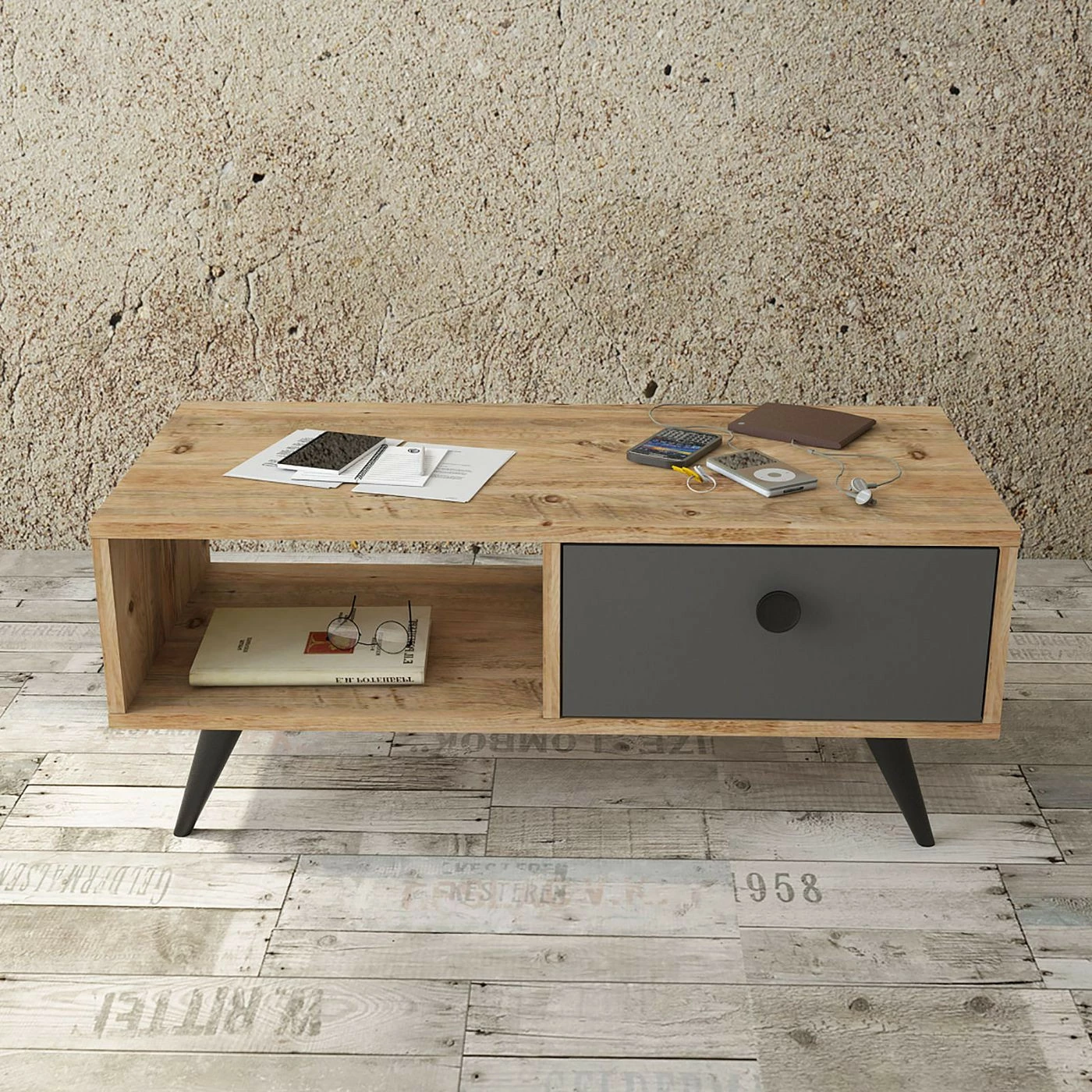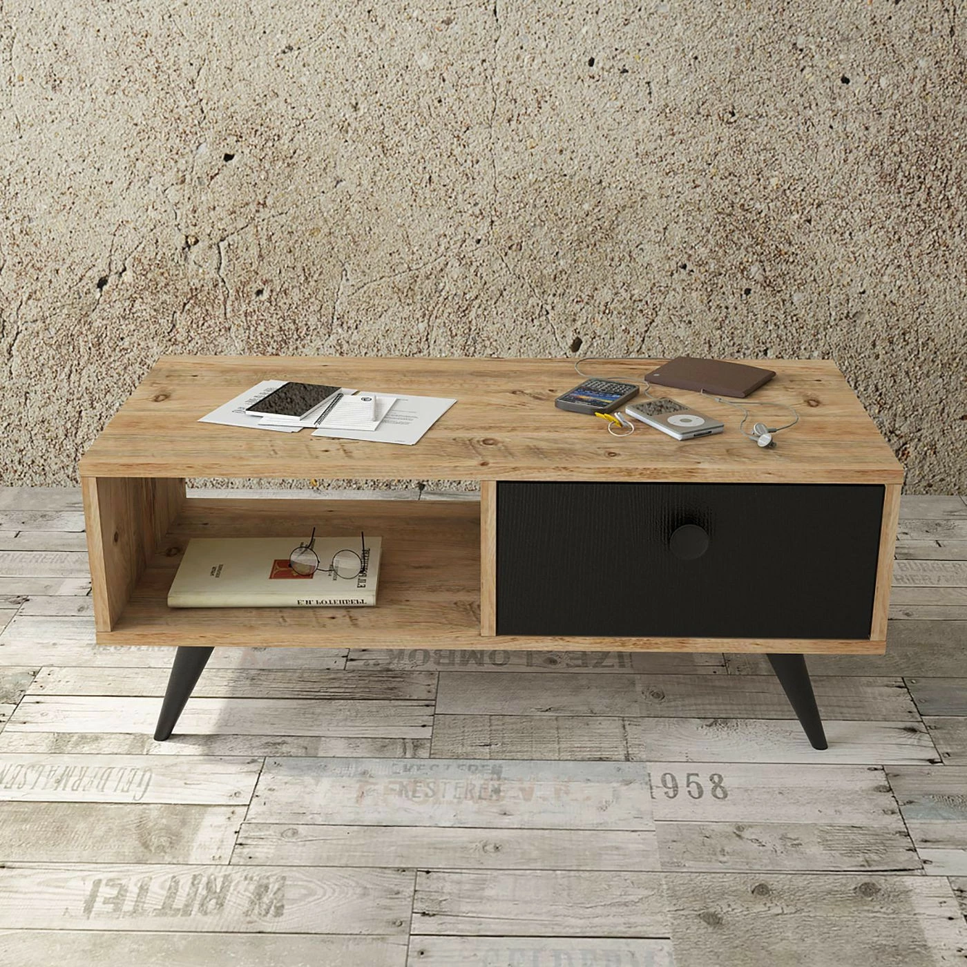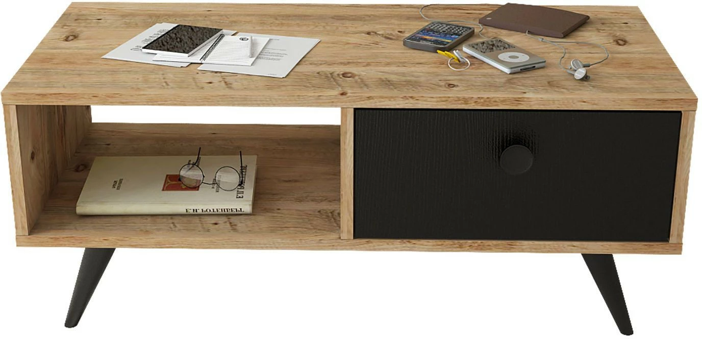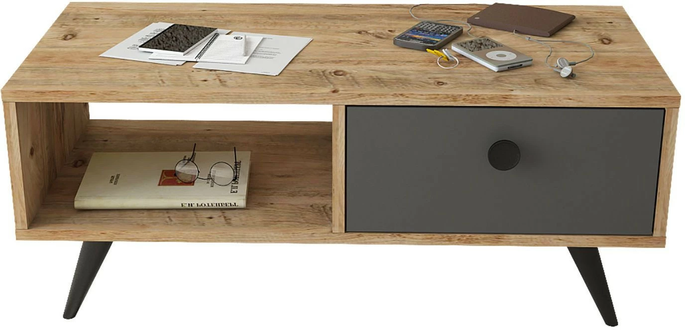 Kaksivärinen VL7-sohvapöytä. Erivärinen laatikko on tämän pöydän juju.