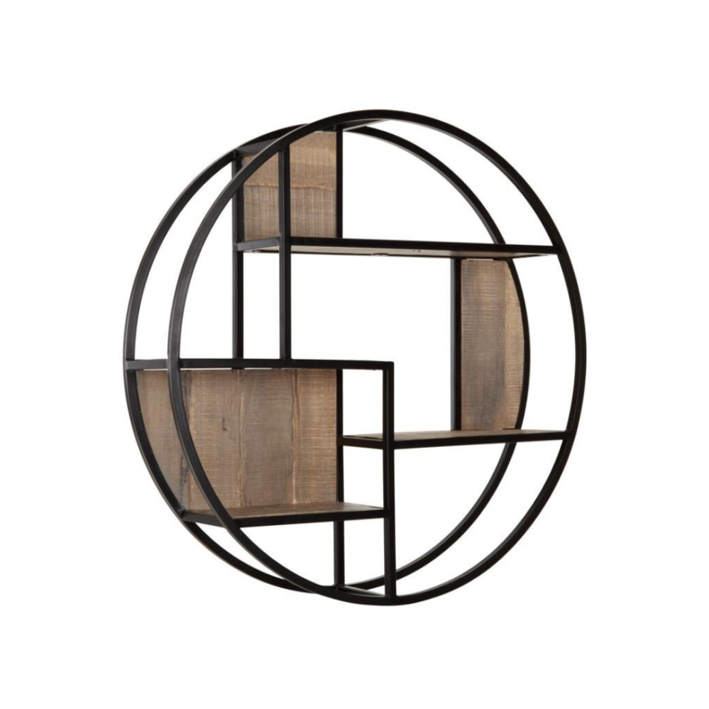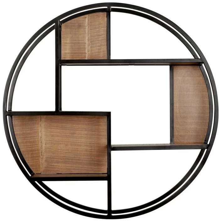Suuri pyöreä sesinähylly rautakehyksellä on upea katseenvagistija jo itseessään, puhumattakaan kun sisustat sen juuri itsesi näköisesksi. Vanhva rautakehys ja tiikkipuiset lankut tekevät esineillesi tai kirjoille mielenkiintoisen kolmiulotteisen kehyksen. Sopivasti rouheaa särmää seinälle. Puun ja tumman metallin rouhea yhdistelmä tuo moderniin kotiin vähän rustiikkista kodikasta tyyliä.