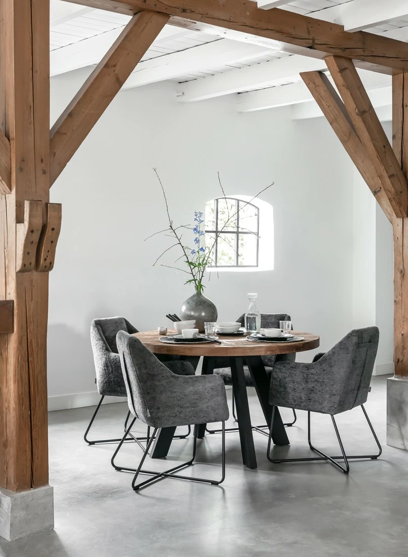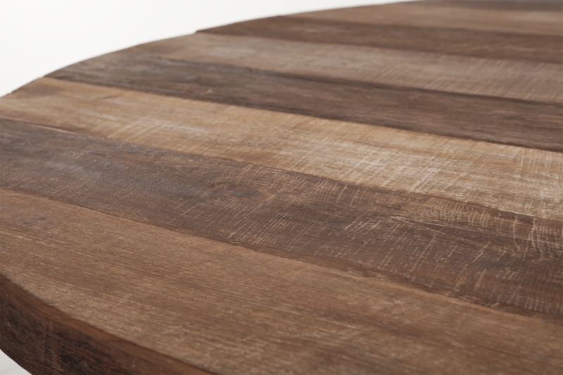 Katsetta ja elämää kestävään sisustustyyliin jykevä puinen pyöreä ruokapöytä, jonka halkaisija on 130cm. Upea yli 5cm paksu taso kierrätystiikistä ja rautarunko kestää arjen ja varsinkin juhlat! Pyöreä pöytä on kätevä useimpiin tiloihin. Sen ääreen istuu hyvin 6 ruokailijaa. Sama malli saatavana myös mustalla tiikkitasolla.