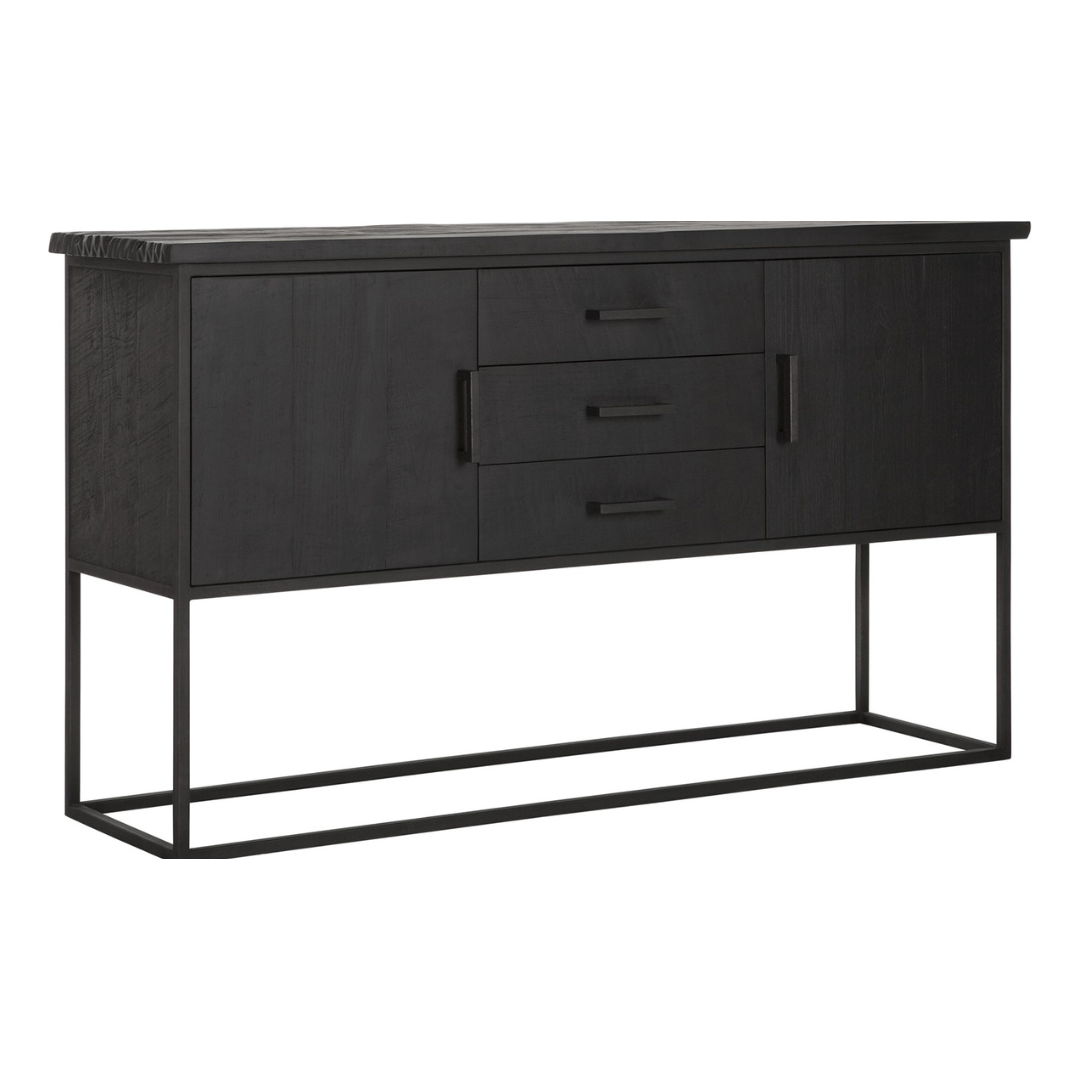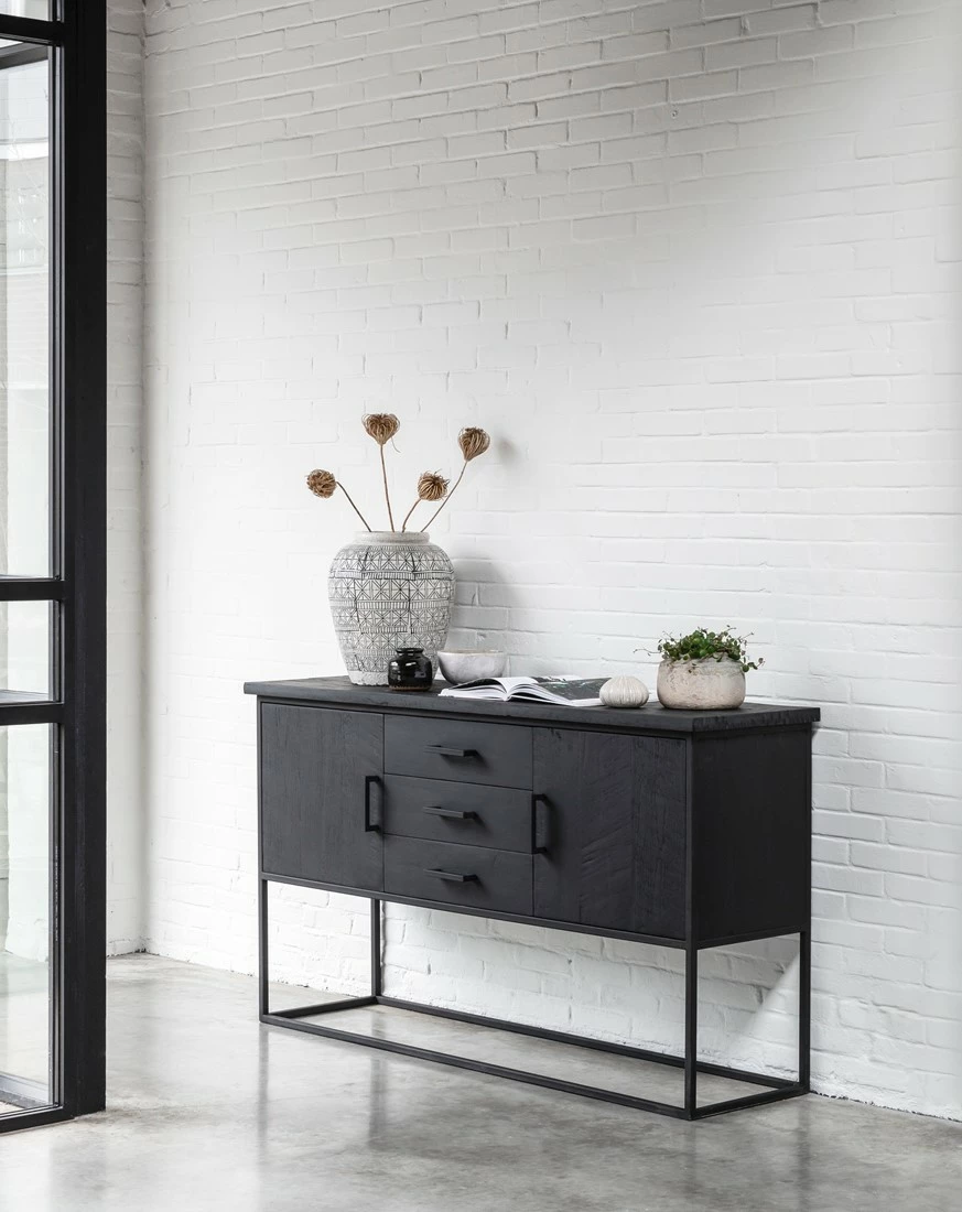 Jotain erilaista tyylillä. Upean näyttävä kokomusta puinen senkki. Laadukas, niin katsetta kuin käyttöäkin kestävä senkki sopii niin astioiden kuin muunkin tavaran säilytykseen. Täydellinen kaappi, jos näyttävyyttä yhdellä huonekalulla. Sivuille aukeavat kaksi kaappia ja kolme laatikkoa. Korotetut jalat tuovat isoon kalusteeseen ilmavuutta.