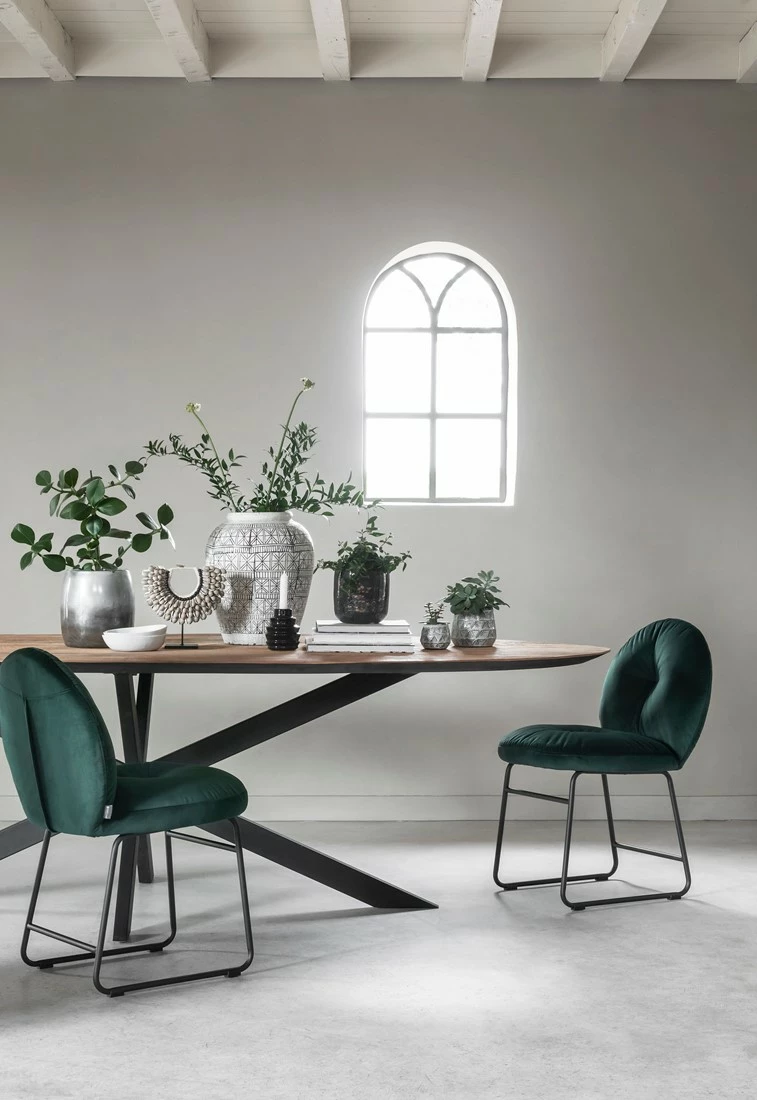 Katsetta ja elämää kestävään sisustustyyliin jykevä puinen ruokapöytä. Uusi ovaali ruokapöytä on mitä mainioin malli, jossa yhdistyy sekä pyöreän että suorakaiteen parhaat puolet! Upea viistoon leikattu pöytätaso on kierrätystiikistä ja rautarunko kestää arjen – ja varsinkin juhlat! Sama malli saatavana myös hiiltyneen mustalla tiikkitasolla. Hämähäkkijalkainen tiikkipöytä on rohkean sisustajan vaihtoehto.