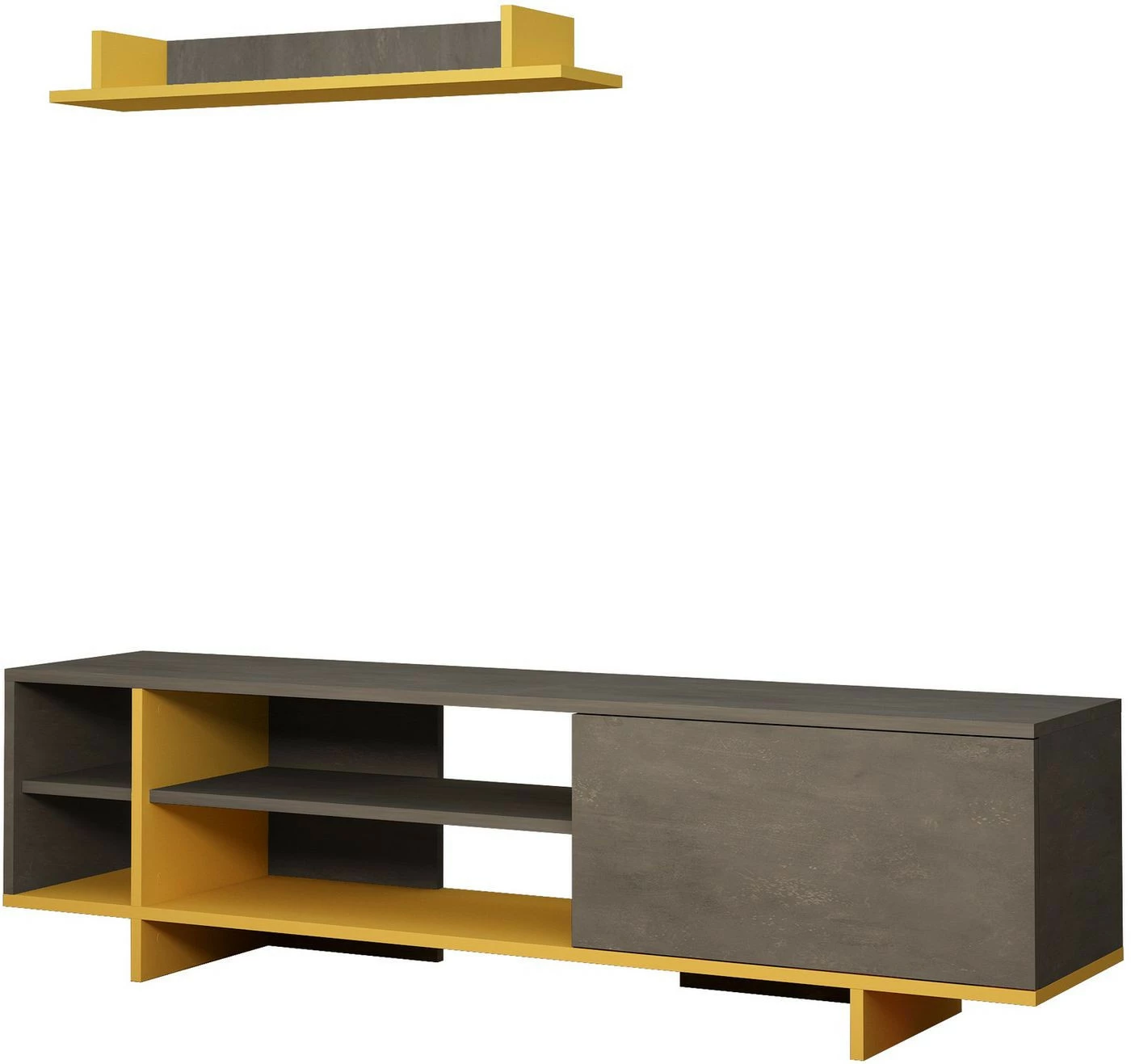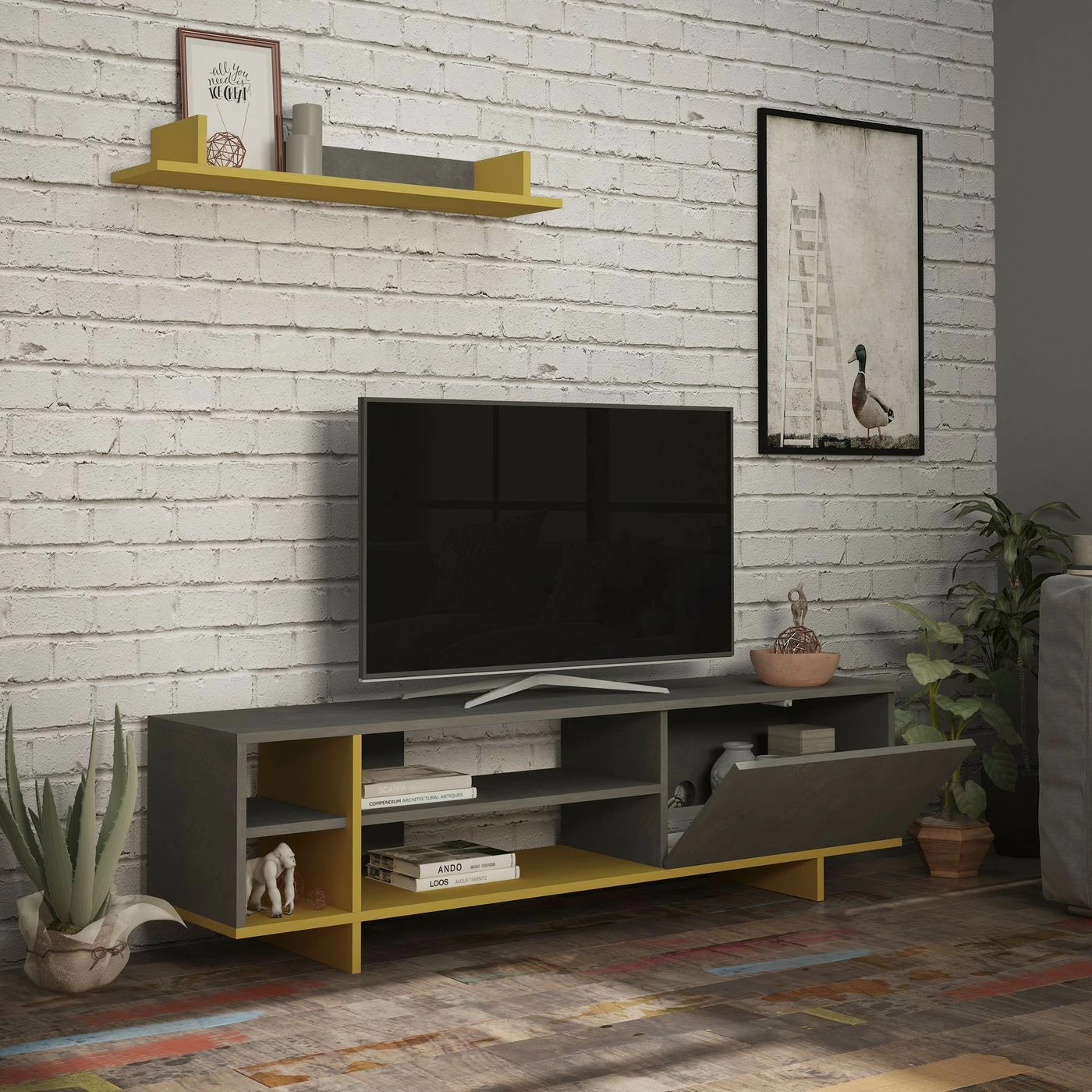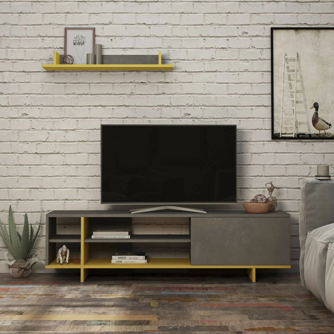 Kaksivärinen Stockton-TV-taso. Erillinen seinähylly viimeistelee kauniin kokonaisuuden.
