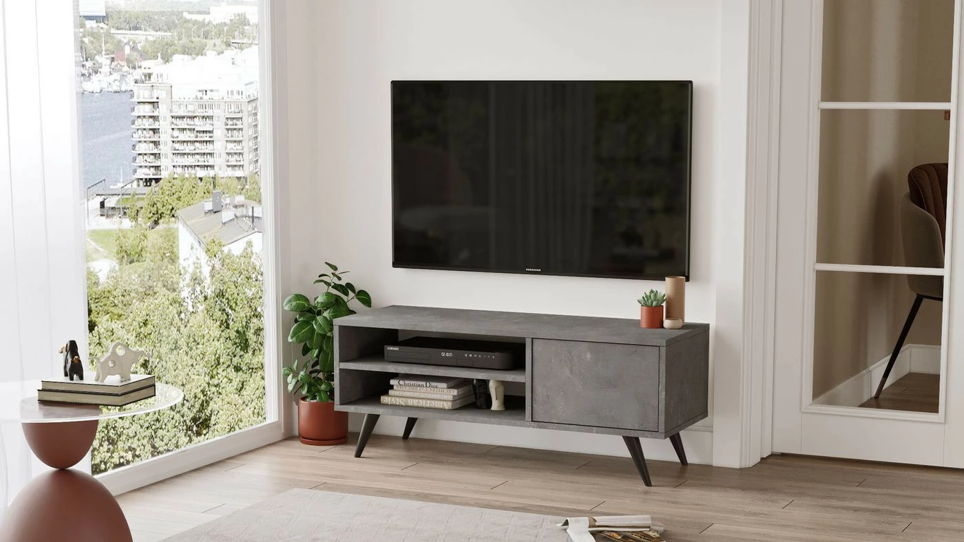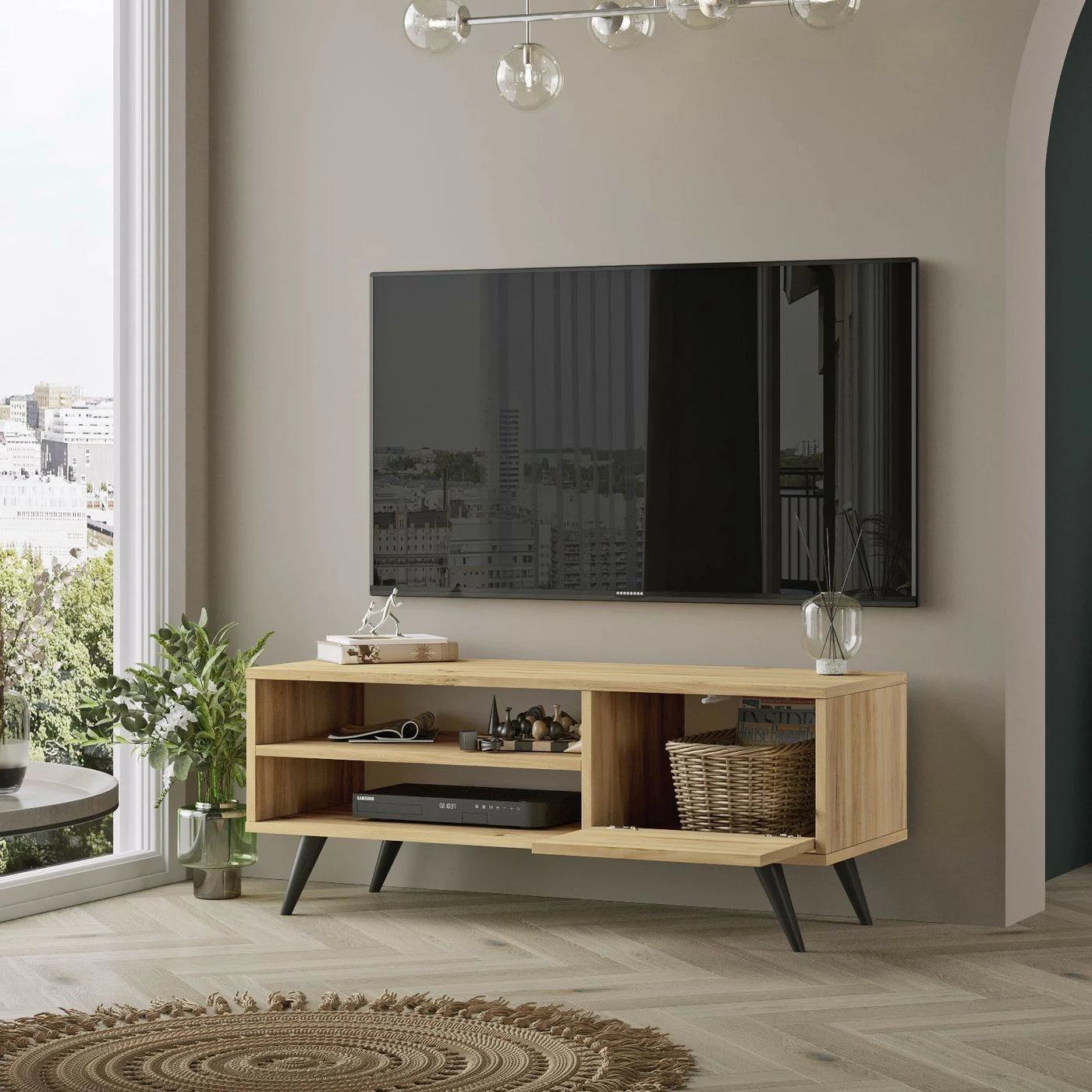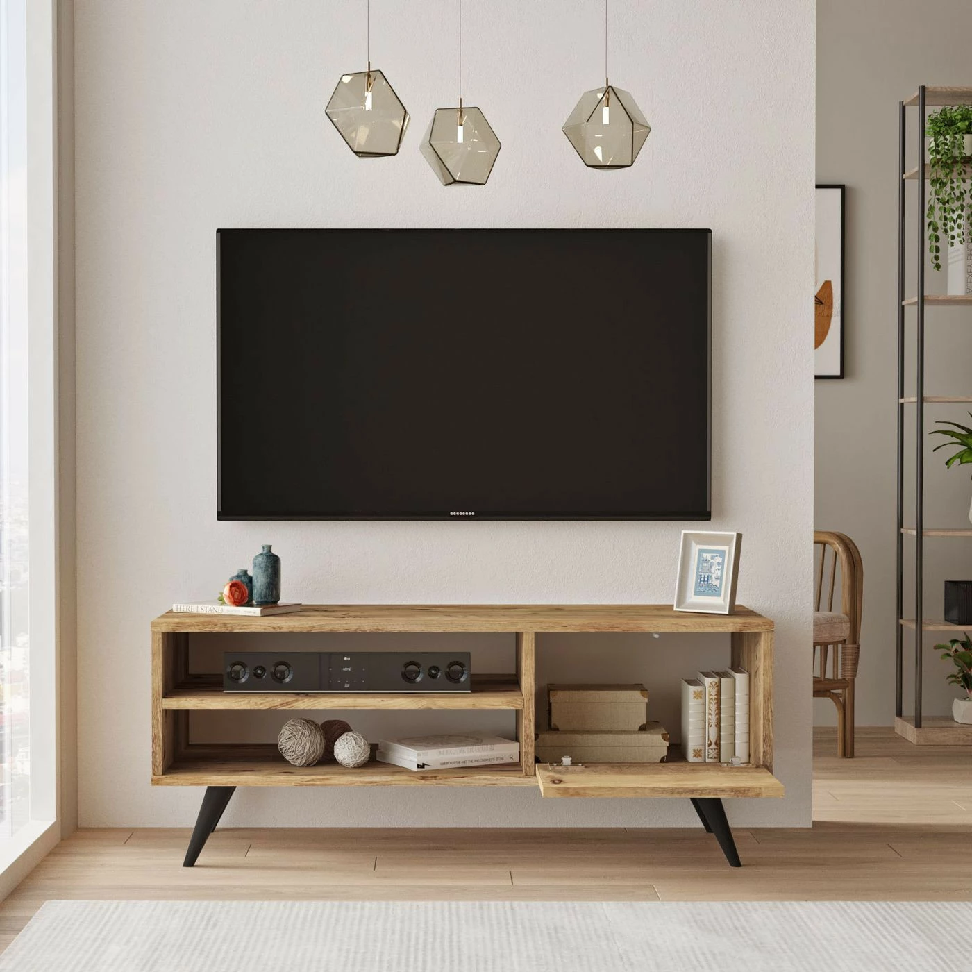 Jos haussa on kaunis ja keskikokoinen TV-taso, löysit etsimäsi. Puiset jalat tuovat tasolle keveyttä.