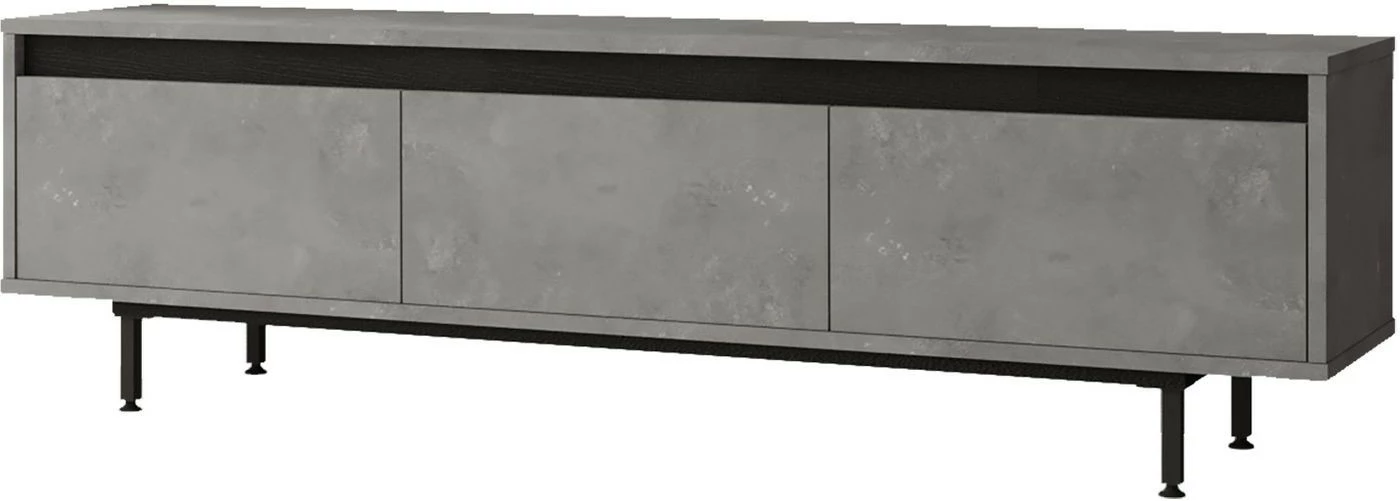 Kivikuosinen LV1-TV-taso.Tumma koristeraita ja metallijalat antavat TV-tasolle linjakkaan ilmeen.