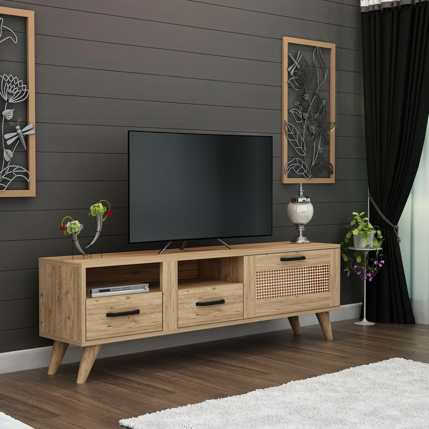 Ruskea Monza-TV-taso. Kepeät jalat antavat kokonaisuudelle persoonallisen ilmeen.