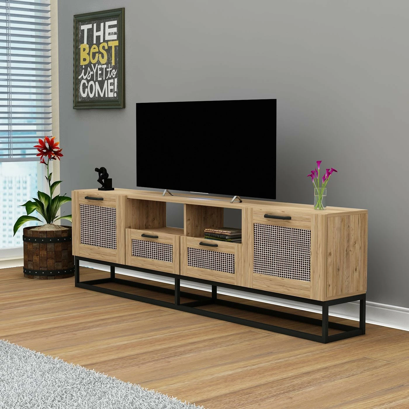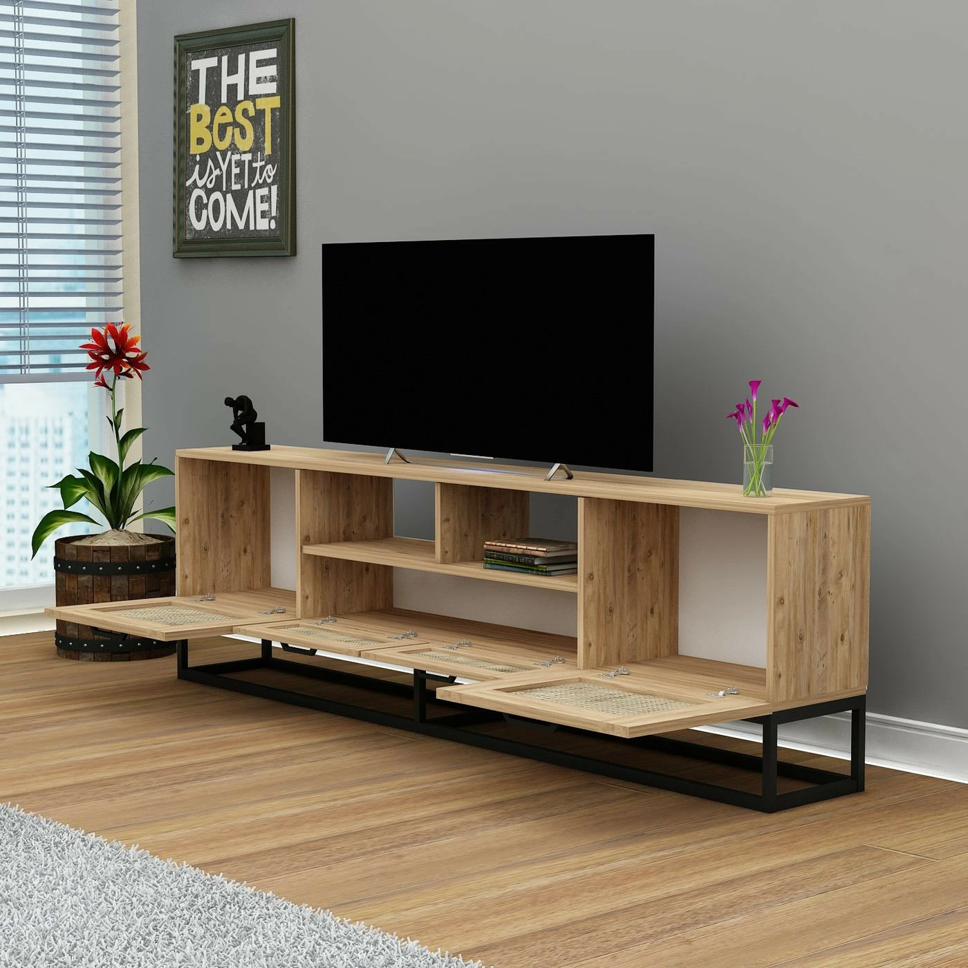 Suosittu Netto-TV-taso kauniinruskeana. Verkkomaiset yksityiskohdat ovissa tekevät Netosta huipputrendikkään mutta myös ajattoman. Jalka on materiaaliltaan metallia.