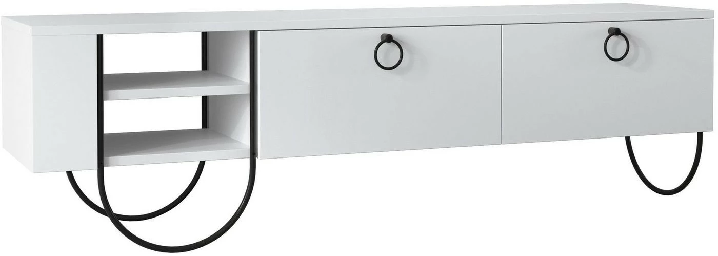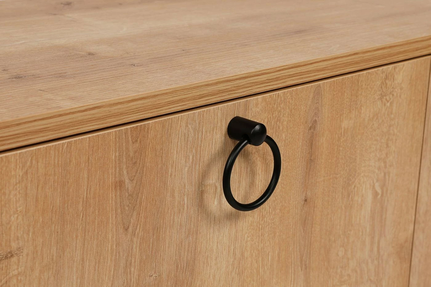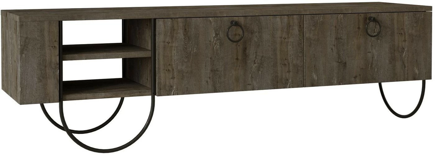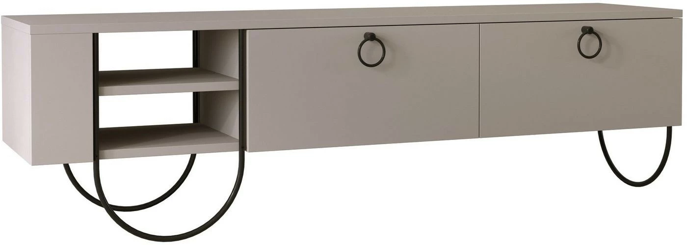 Omintakeiset jalat tekevät Norfolk-TV-tasosta ainutlaatuisen. Jalkojen muotokieli jatkuu laatikoiden vetimissä.